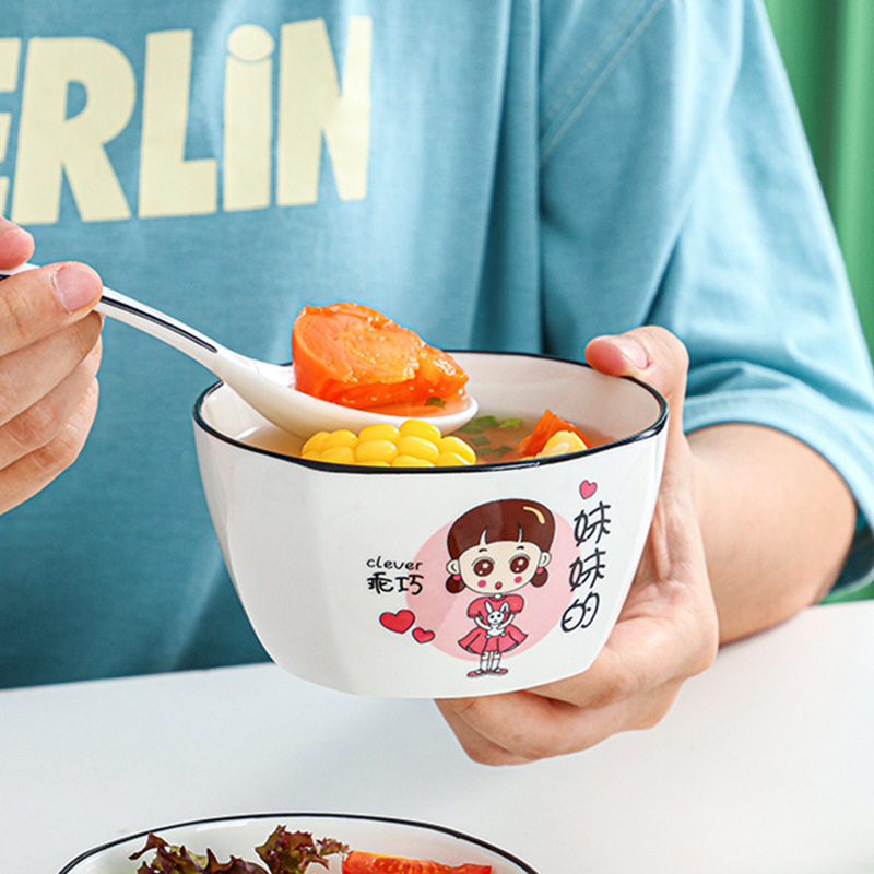陶瓷餐具日式创意祝福水果碗碗家用吃饭专用小碗精致可爱饭碗