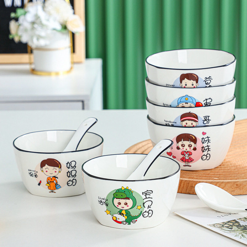 亲子碗新款家用个性一家四口碗碟盘勺套装卡通饭碗陶瓷家庭碗弟弟