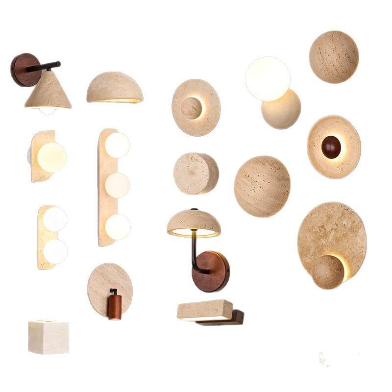 迪格雅日式复古卧室客厅氛围感壁灯创意奶油风入户过道黄洞石壁灯