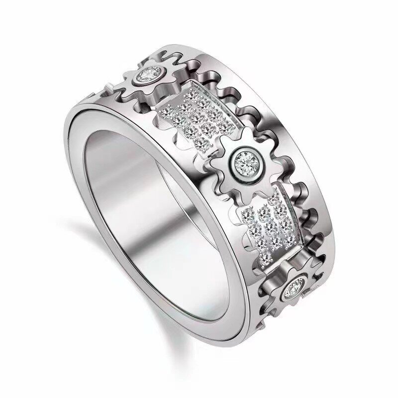 热卖齿轮戒指可转动戒指男女情侣旋转轮满天星指环潮流玫瑰金对戒