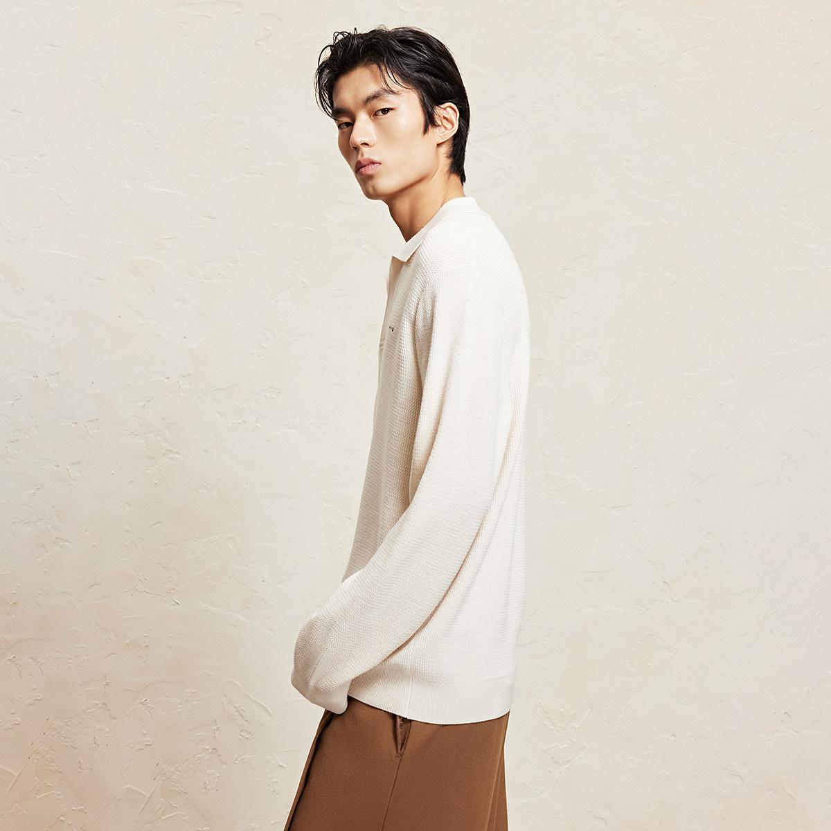 polo领型;胸前刺绣logo;羊毛混纺面料