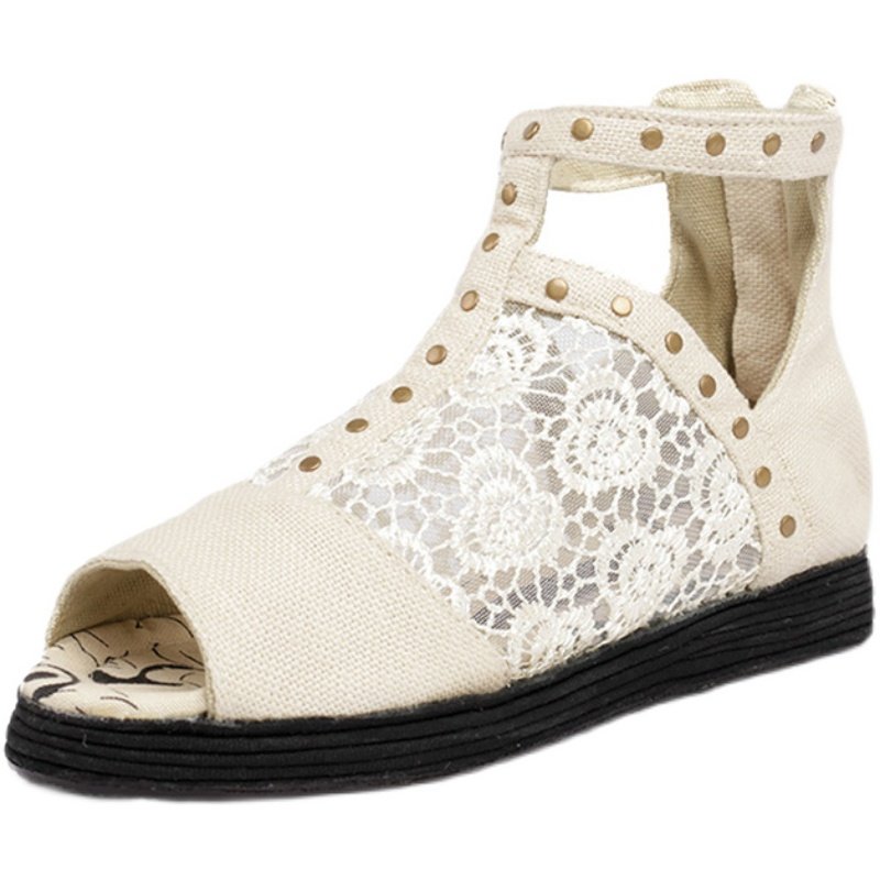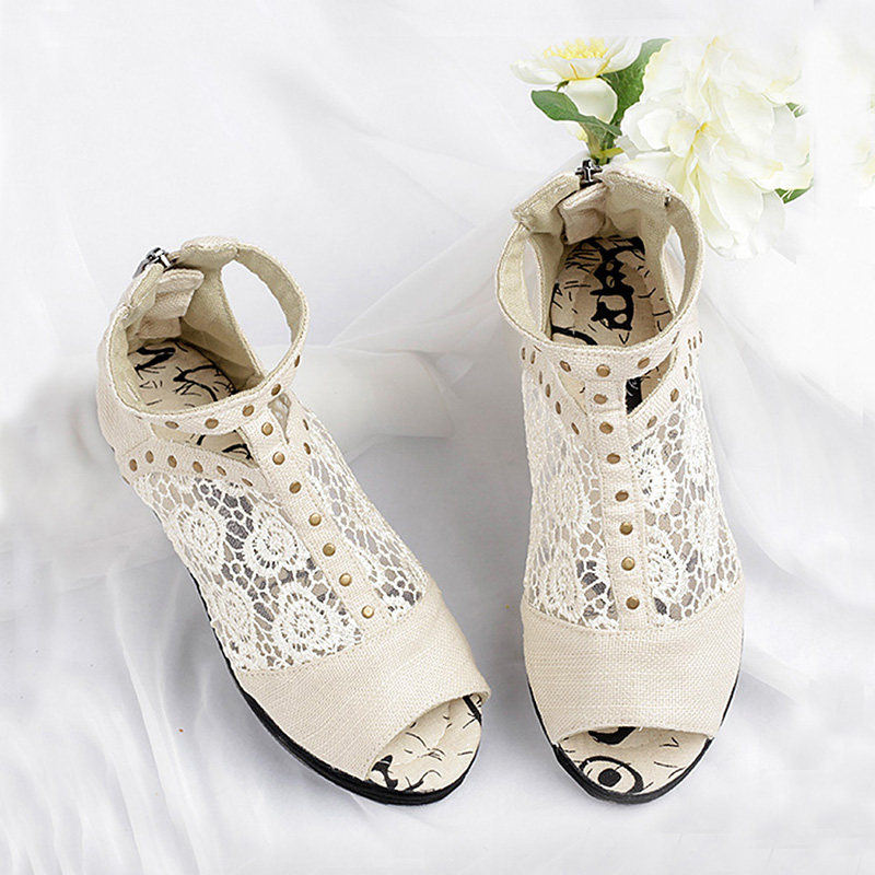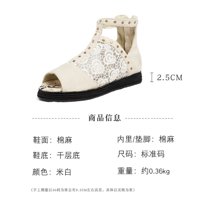 纳妮雅原创女鞋千层底布靴夏季中帮凉鞋棉麻百搭低跟平底凉靴网纱