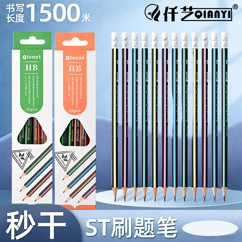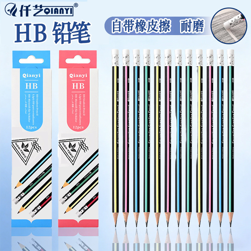 仟艺彩杆铅笔HB2B三角杆铅笔幼儿园学习笔一二年级考试套装日常书写涂卡笔无毒矫正握姿笔初学者三角杆铅笔