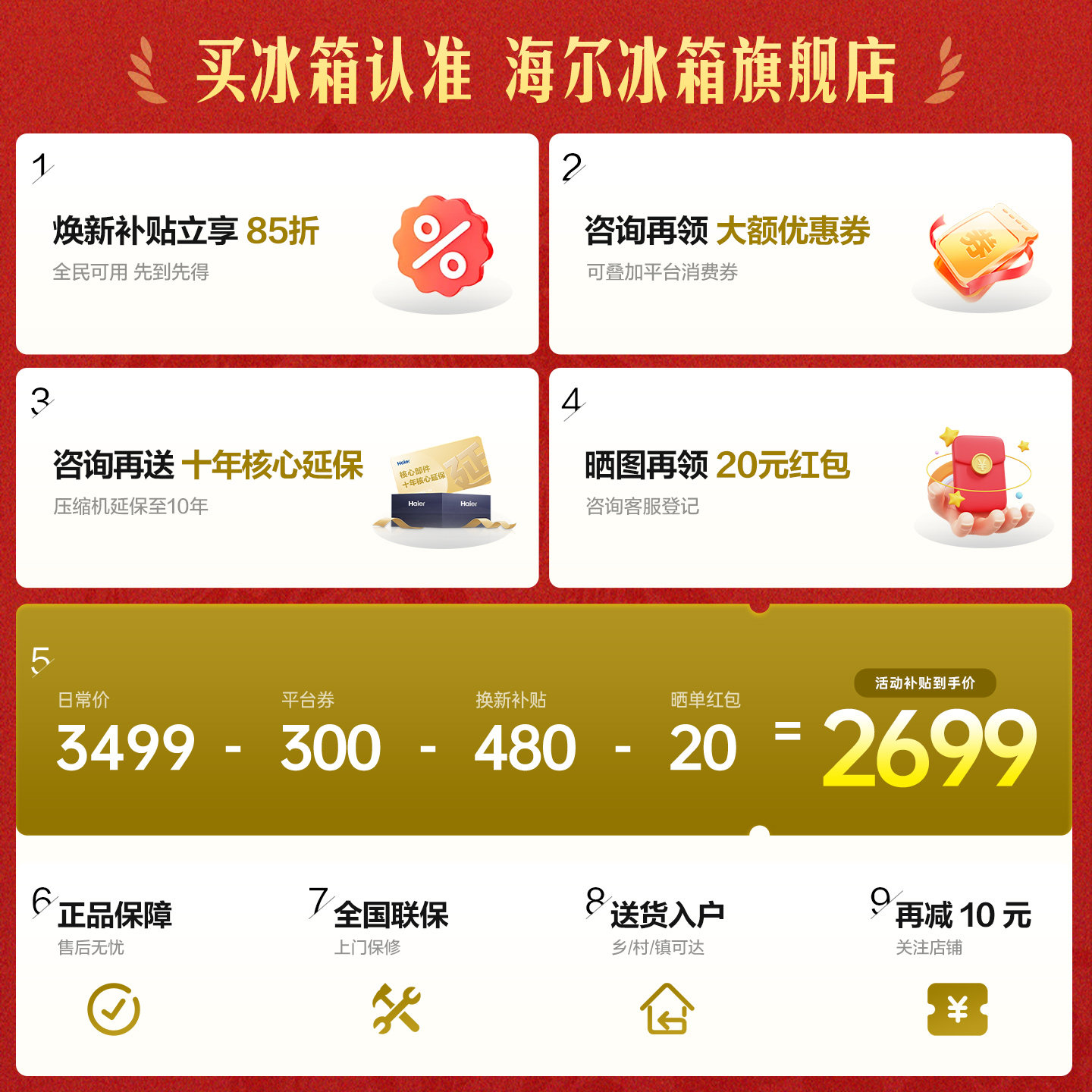 海尔冰箱以旧换新补贴476L十字双开门大容量家用一级能效无霜官方