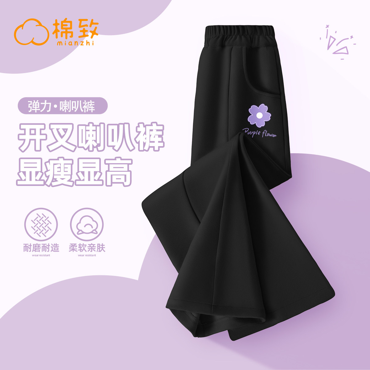 棉致女童裤子春秋2025新款休闲阔腿长裤女大童秋装儿童黑色喇叭裤