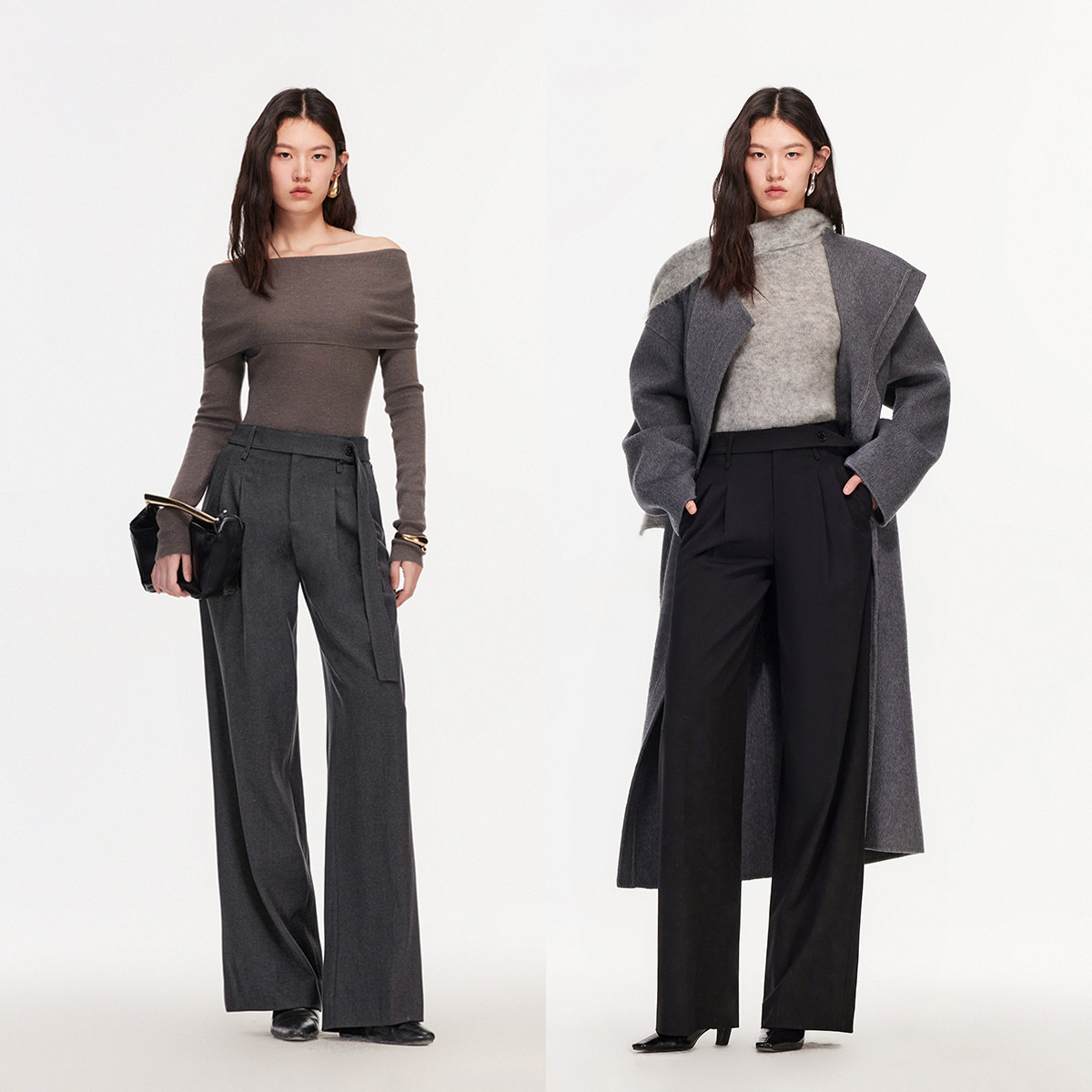 唐狮DESSO秋冬新款糯米裤高腰垂感宽松加绒直筒阔腿裤5