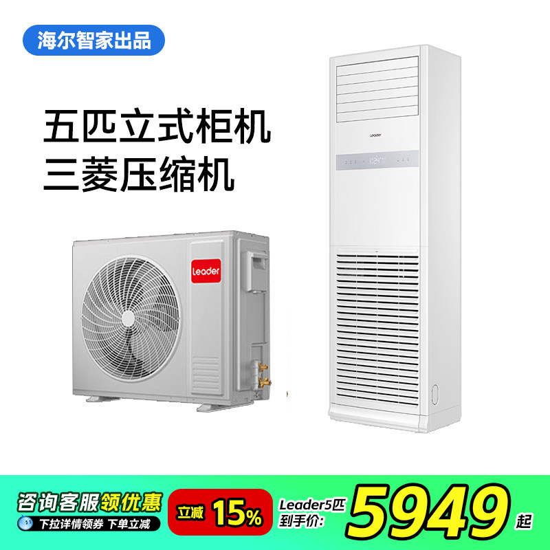 海尔五匹立式柜机中央空调5p商用leader冷暖商铺三菱压缩机旗舰