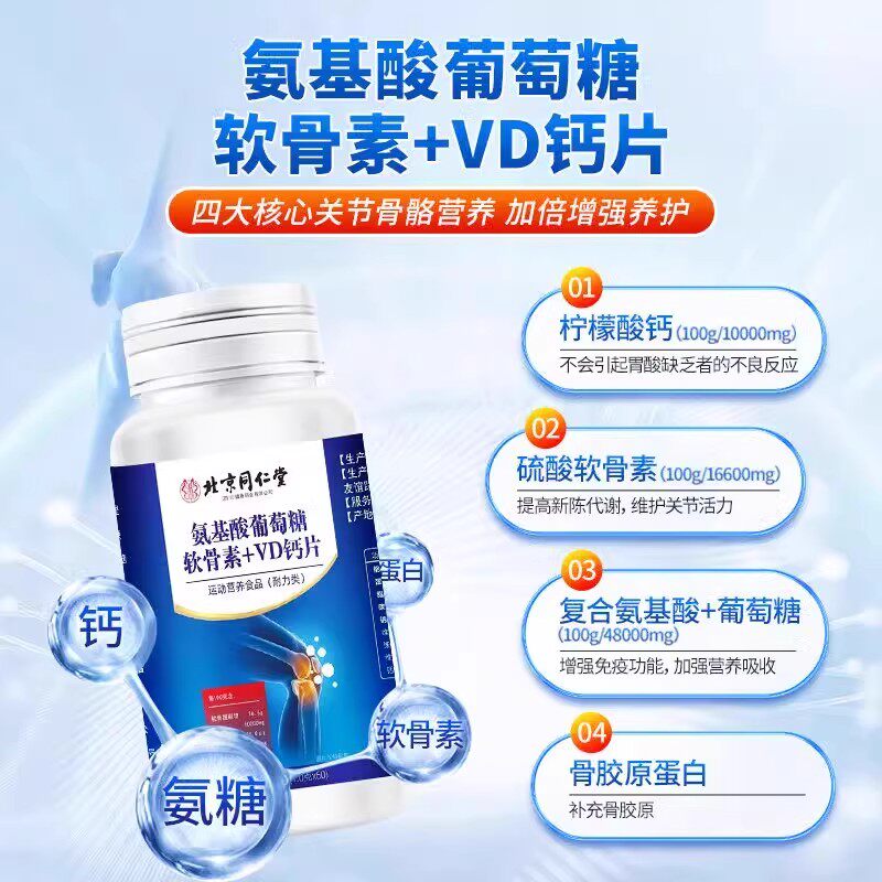 北京同仁堂氨糖软骨素加钙片中老年人护关节疼痛正品健康骨质疏松