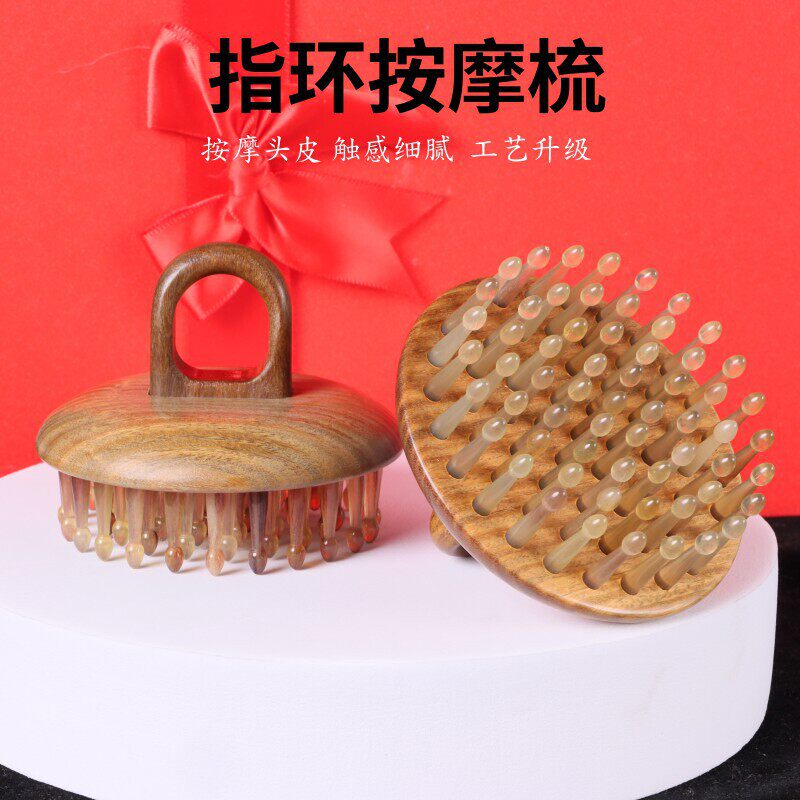 天然牛角梳头部经络梳子疏洗头刷头疗刮痧头皮按摩梳指环梳