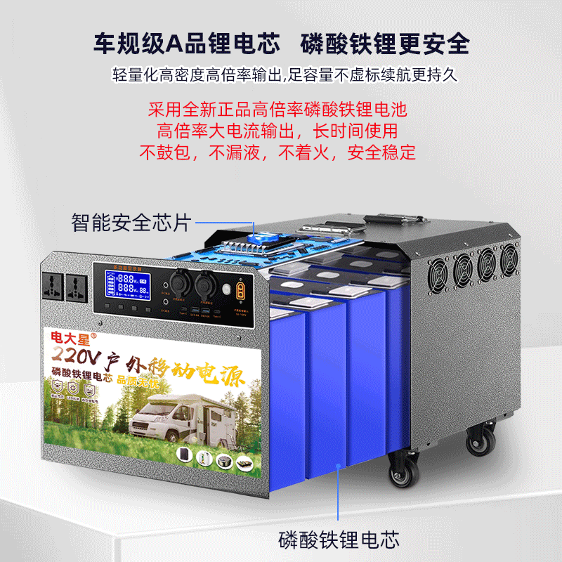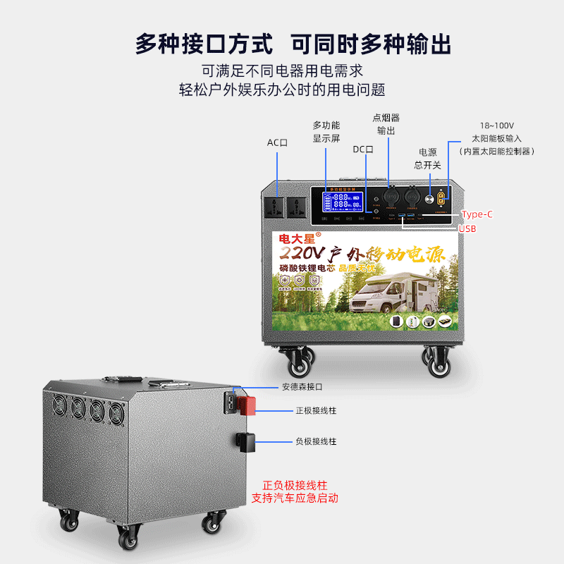 电大星220V户外移动电源磷酸铁锂电池大容量大功率摆摊露营房车野营光伏储能