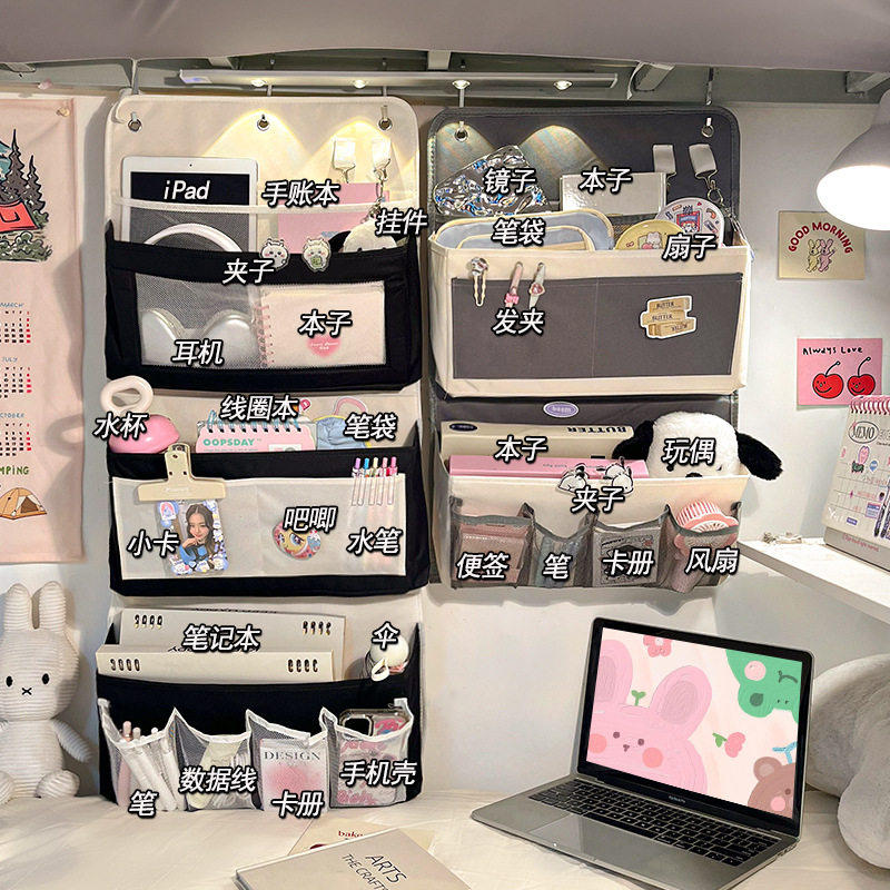 学生宿舍挂书袋初中生高中生高颜值大容量上下铺收纳挂袋墙挂式墙壁床头床边床帘置物袋寝室悬挂式挂钩挂兜