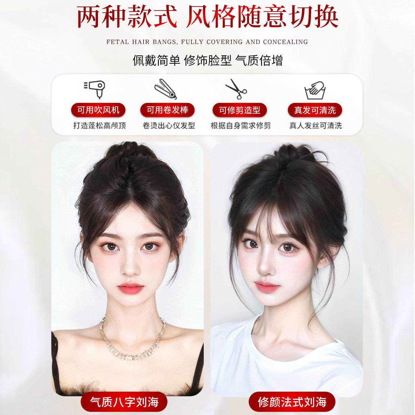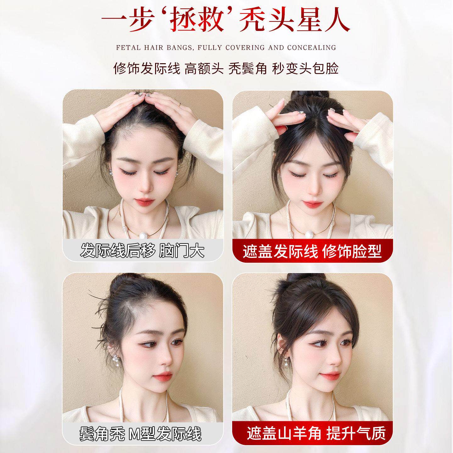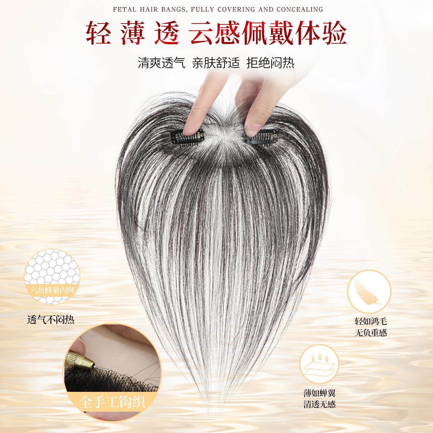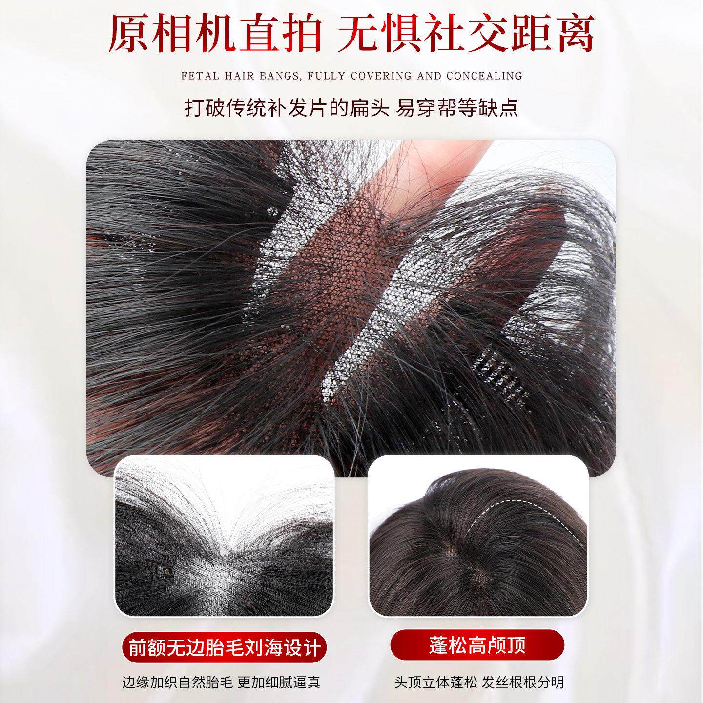 胎毛刘海假发女片头顶补发蓬松真发量遮前额鬓角发际线贴隐形额头
