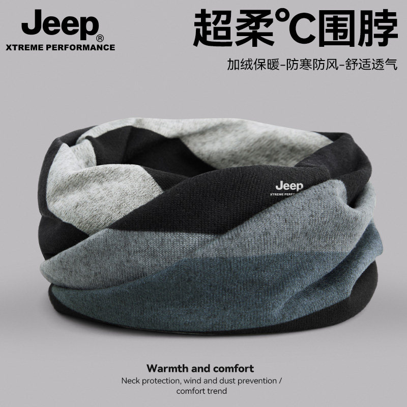 jeep吉普脖套男士冬季两用围巾骑行男小围脖护颈巾加绒护脖保暖冬