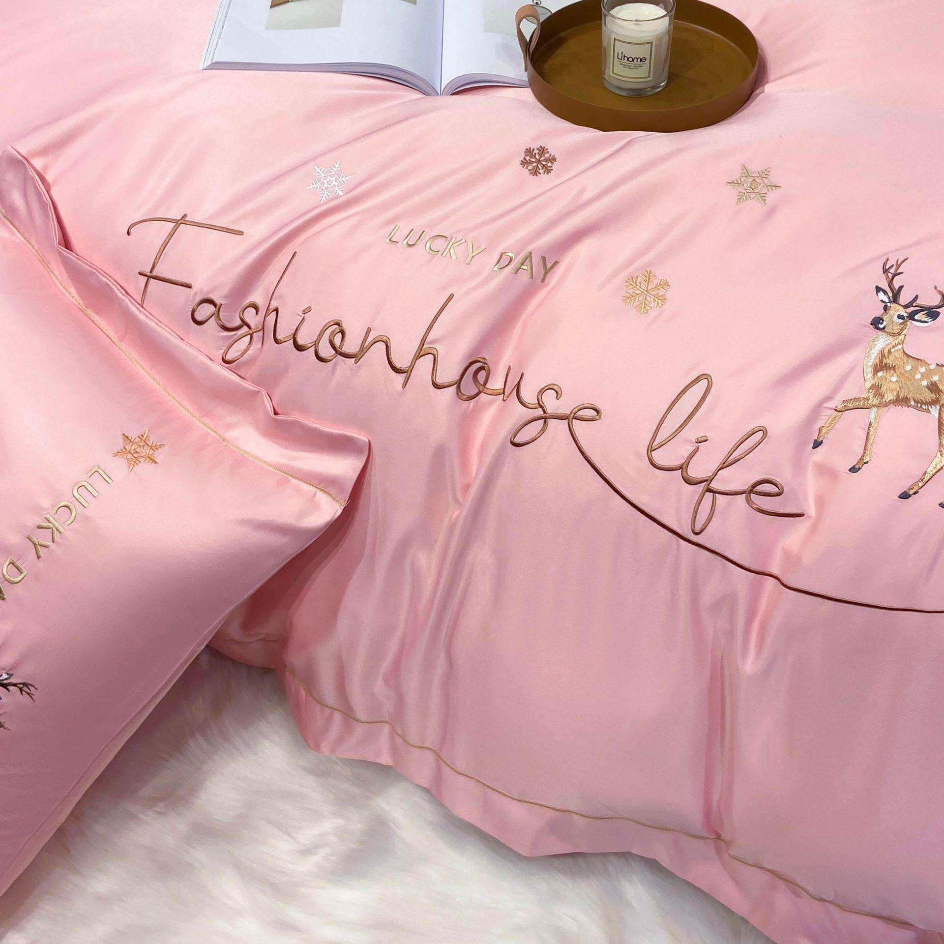 新款真丝绣花夏被四件套水洗天丝冰丝被子蕾丝夏季凉感舒适