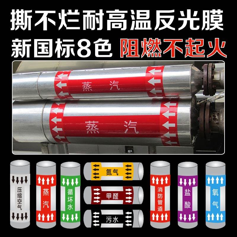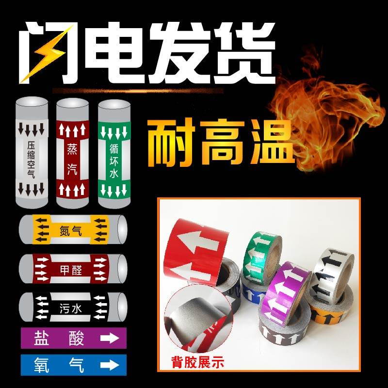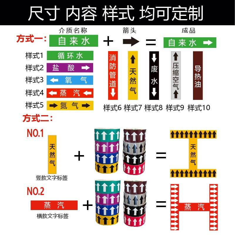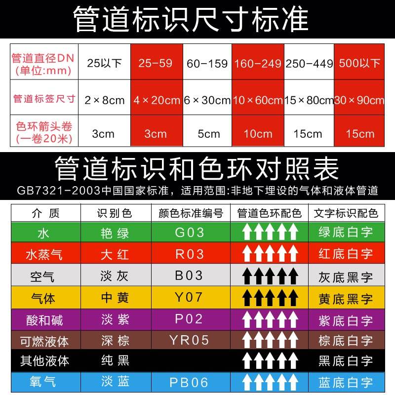 国标管道标识贴纸流向箭头压缩空气氮气自来水标识箭头色环胶带介质流向标识天然气管道标识管道阀门开关标识