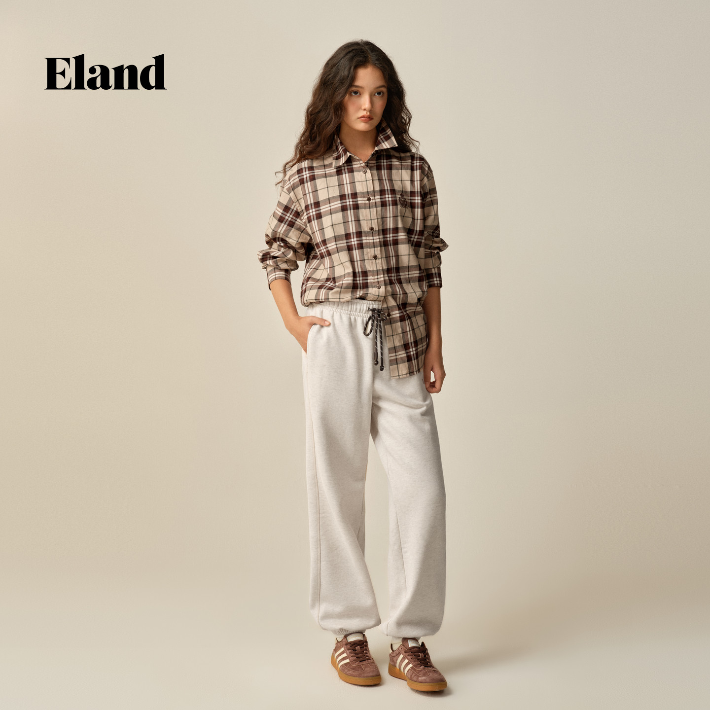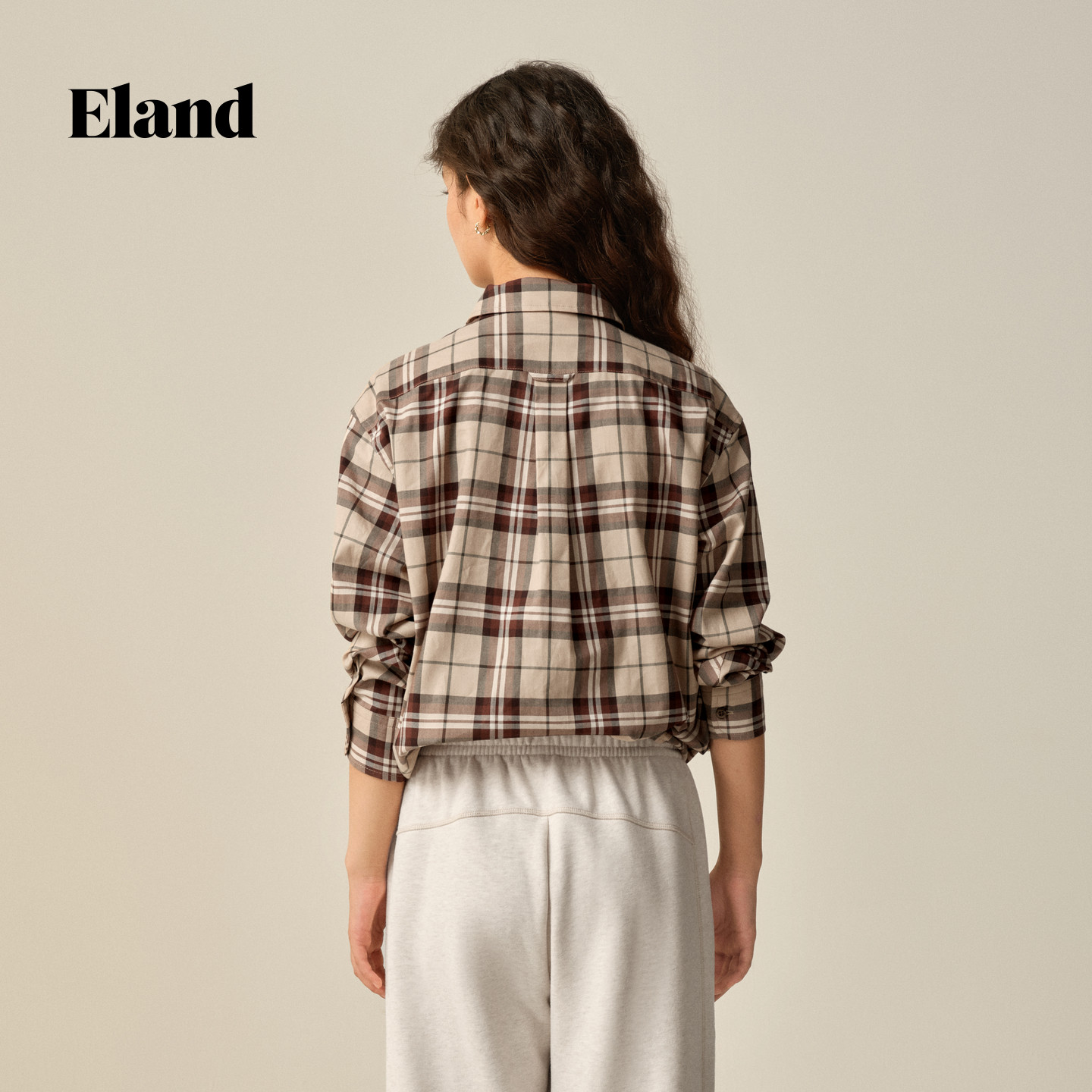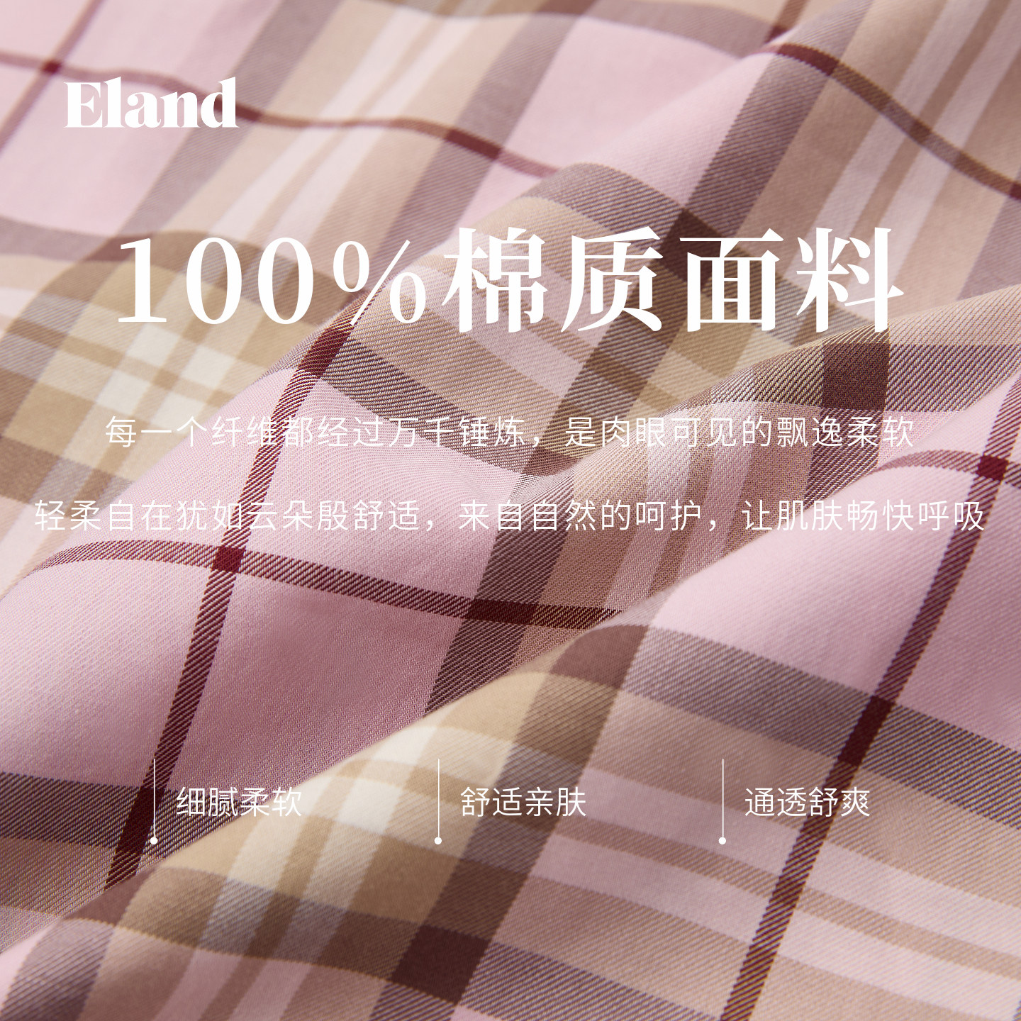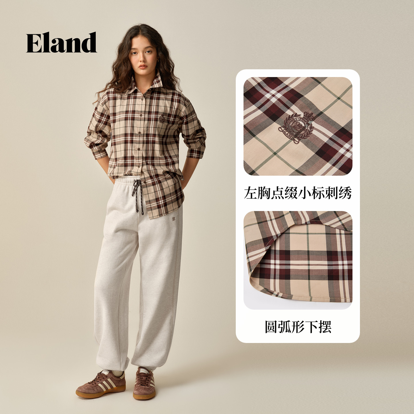 【100%棉】Eland衣恋衬衫女时尚撞色格纹上衣2025冬季新款