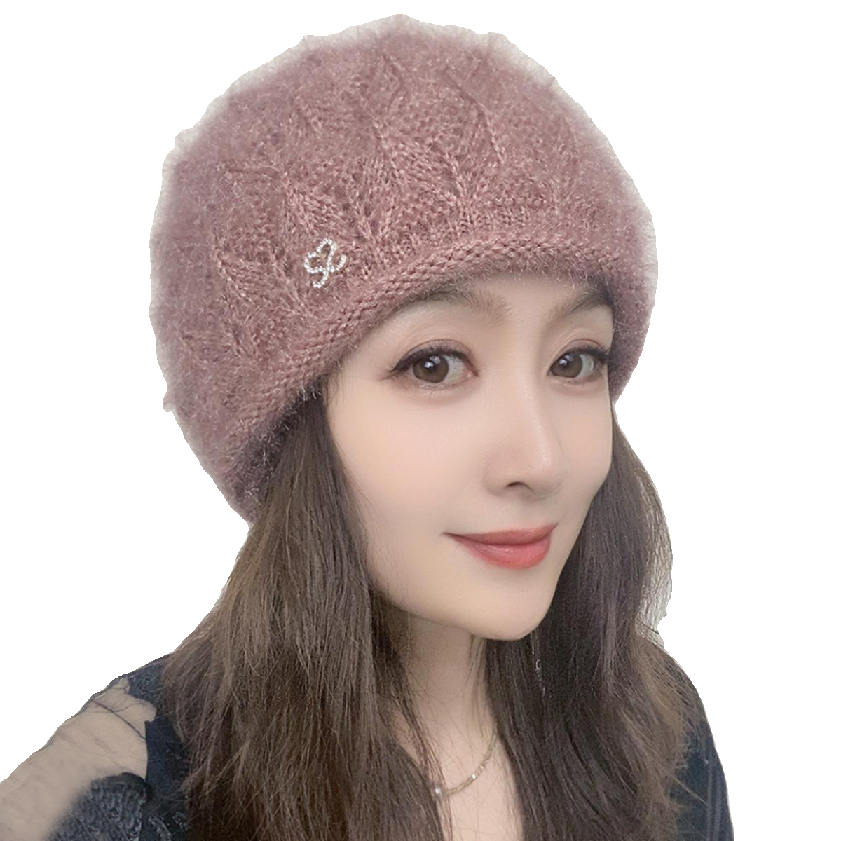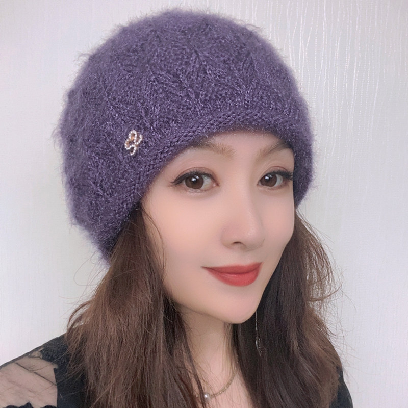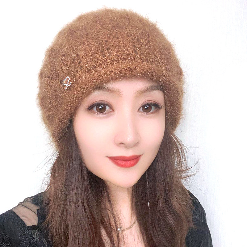 时尚洋气帽子女2025新款冬季双层中老年保暖护耳包头帽毛线针织帽