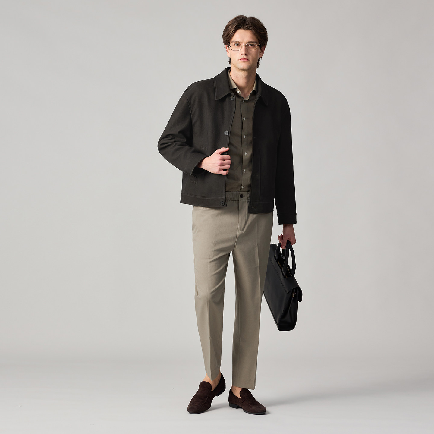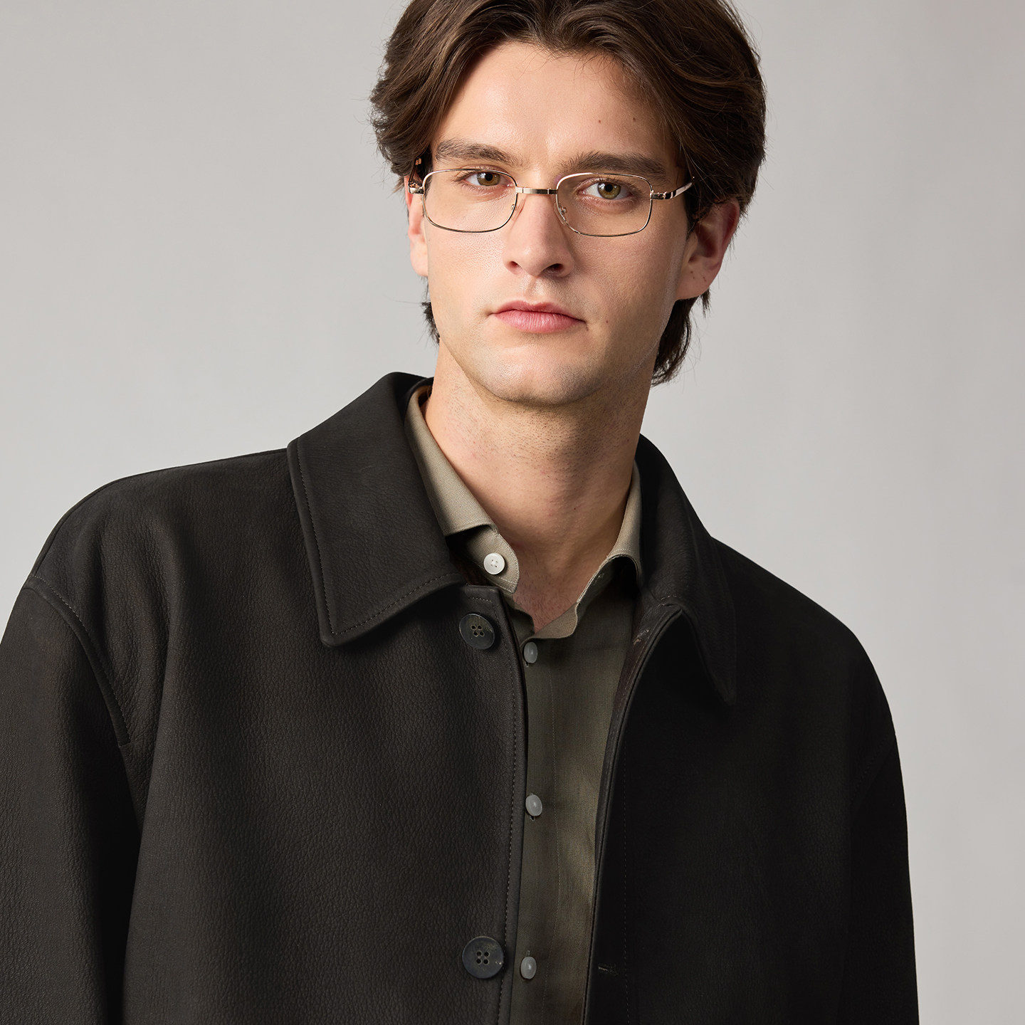 【鹿纹羊皮革】柏品进口面料翻领皮衣男款2026春新复古夹克外套