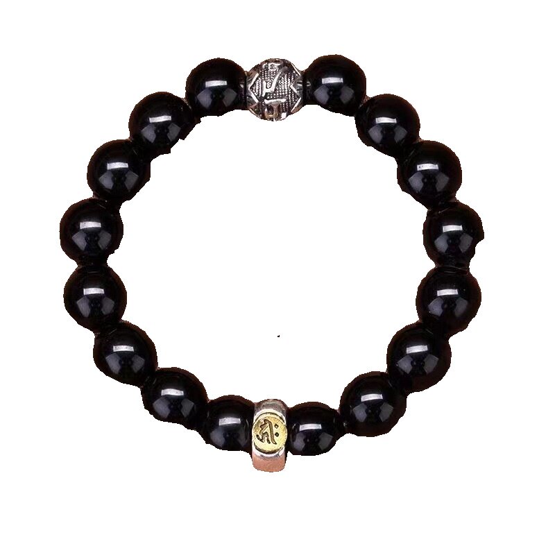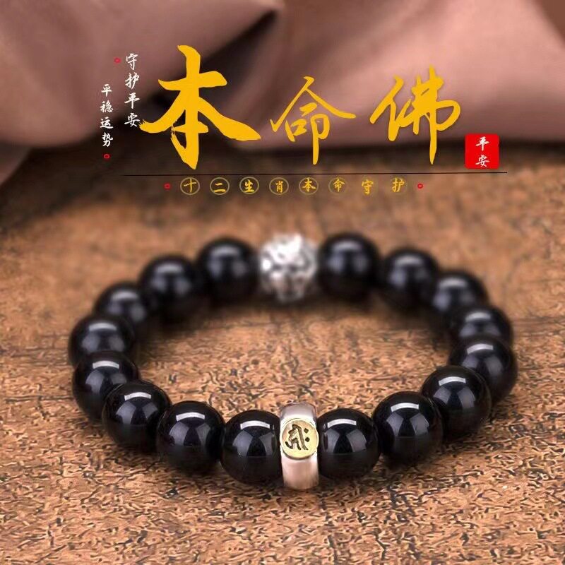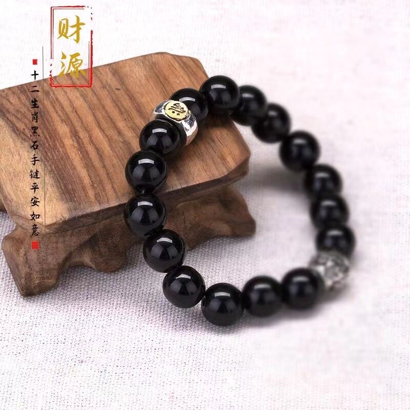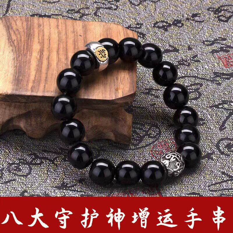 黑曜石十二生肖本命佛手链男女款手串仿黑曜石生肖好运八大守护神