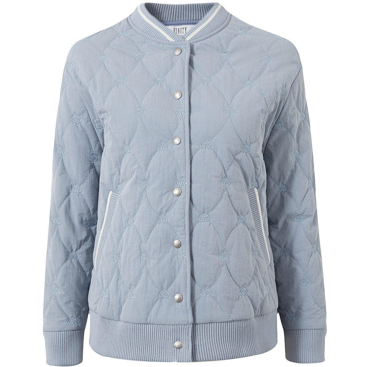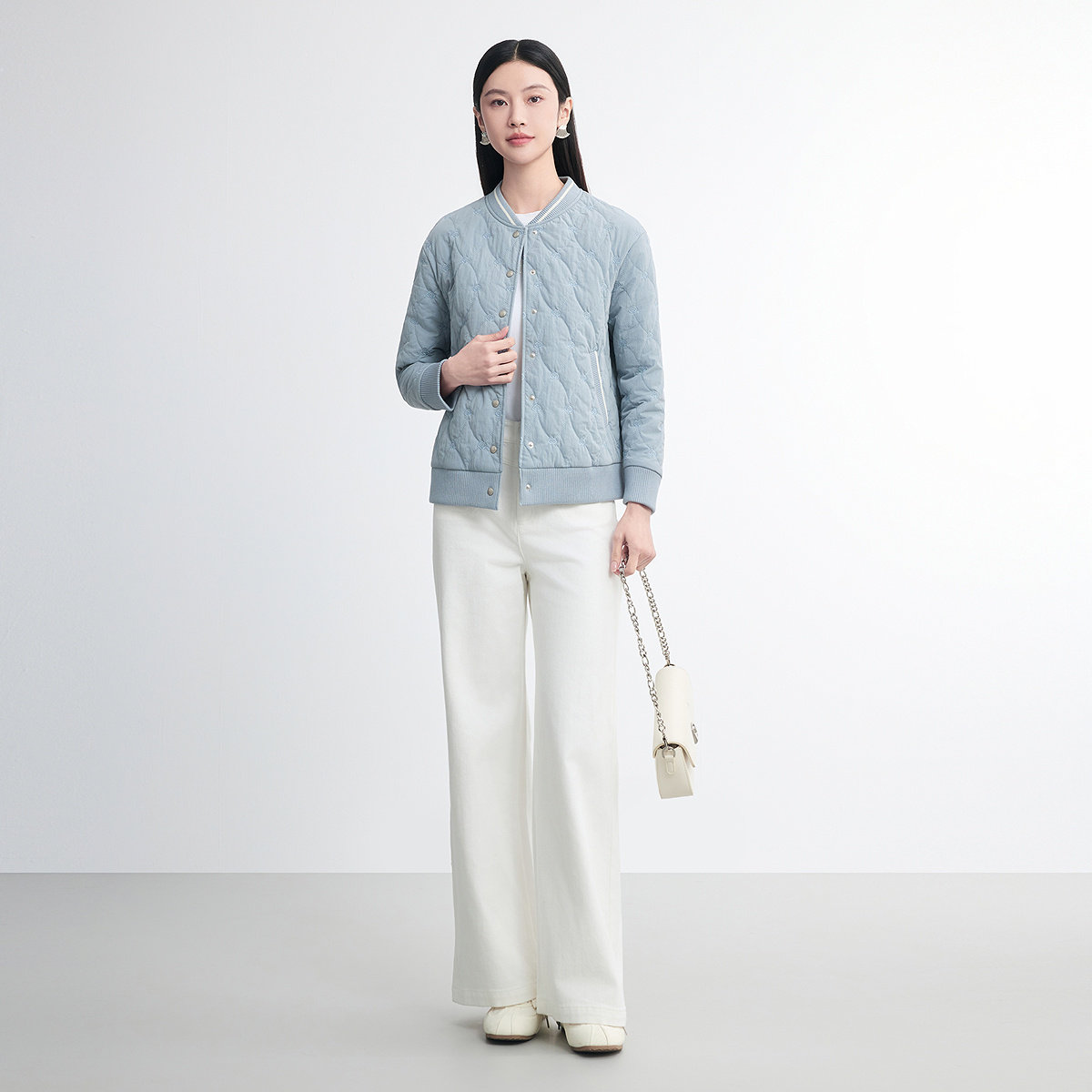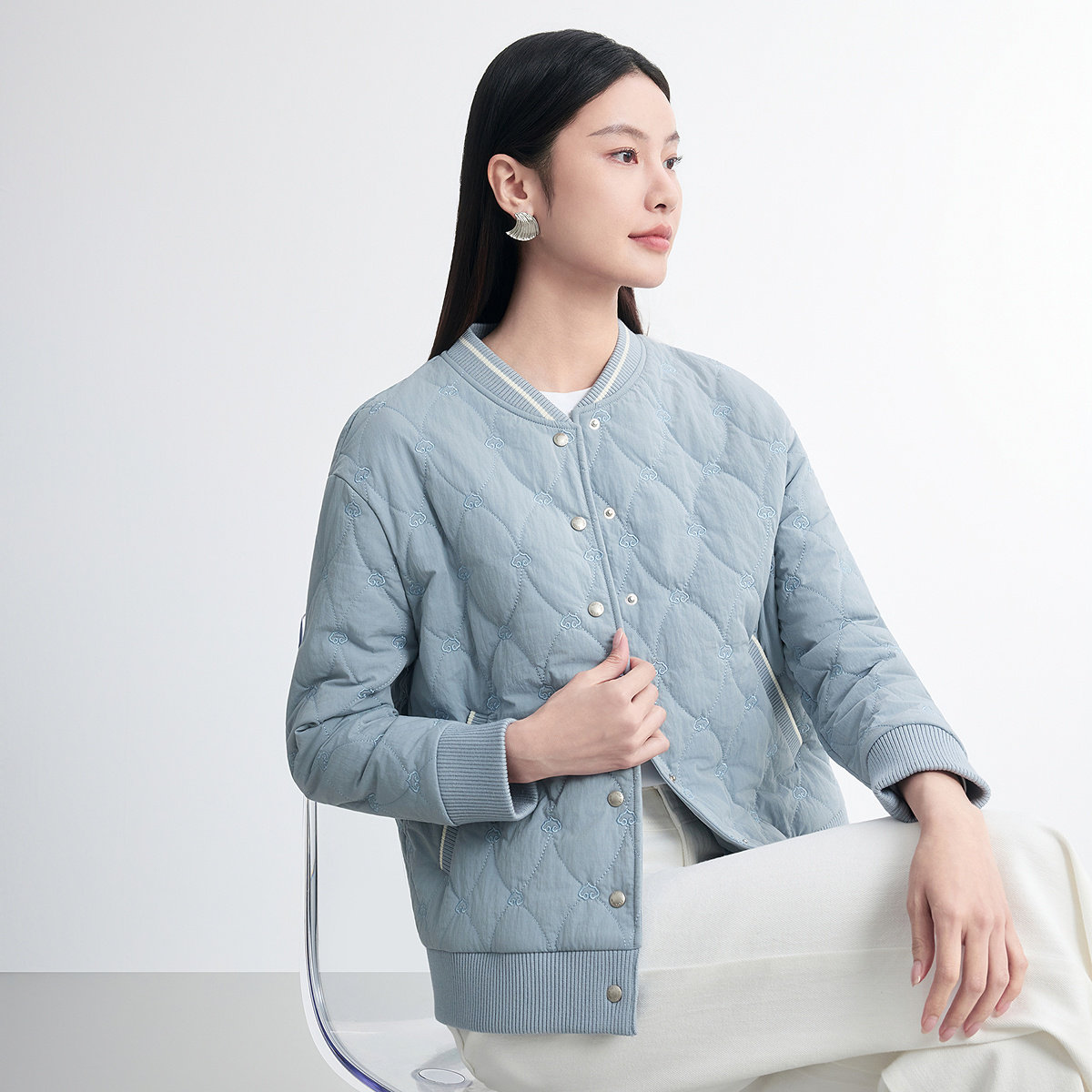 FINITY菲妮迪棉服棉袄2026春新款简约蓝色菱形短款圆领保暖外套女