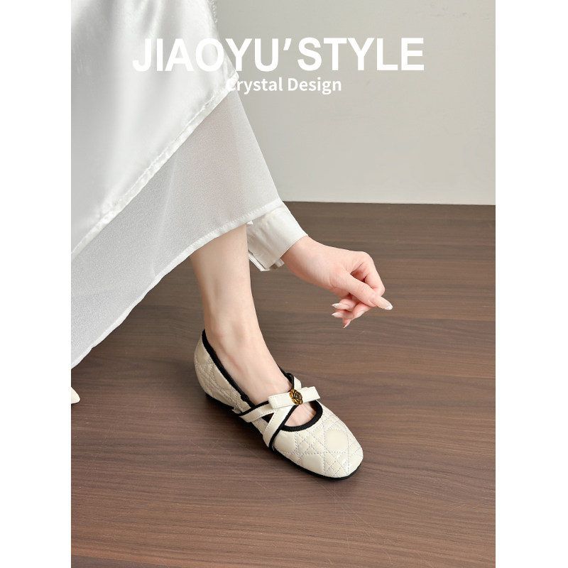 内增高法式裸色尖头单鞋女2025新款名媛千金平底浅口气质玛丽珍鞋