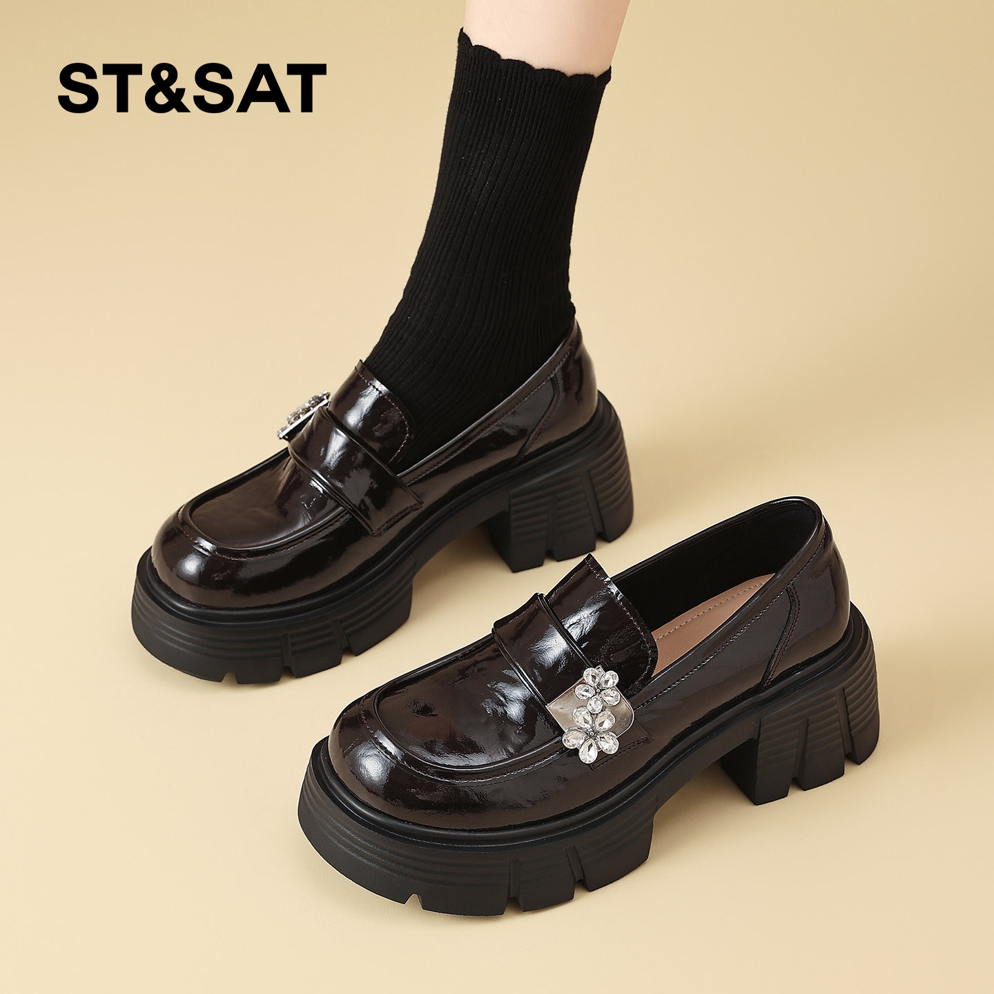 星期六厚底时尚乐福鞋女增高2026春季新款英伦风百搭配裙子小皮鞋