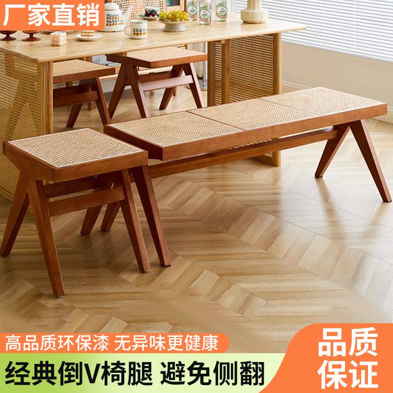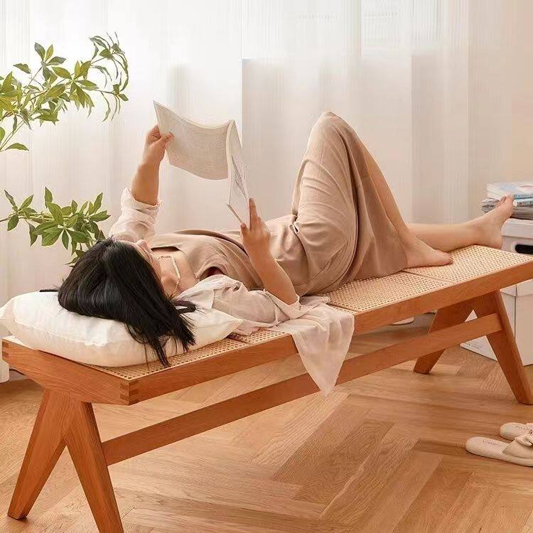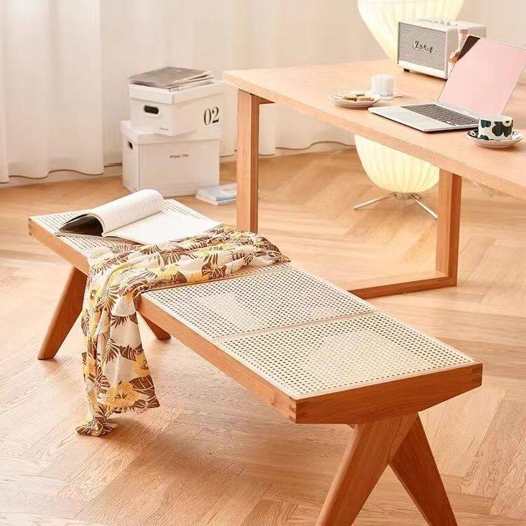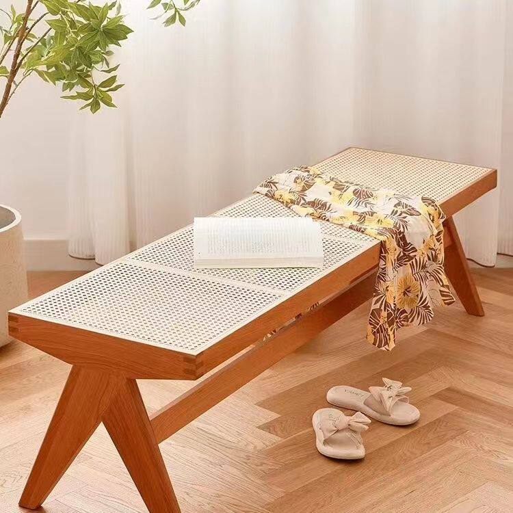 cc卧室实木藤编长条凳折叠户外家具客厅餐厅民宿家用换鞋凳中古凳