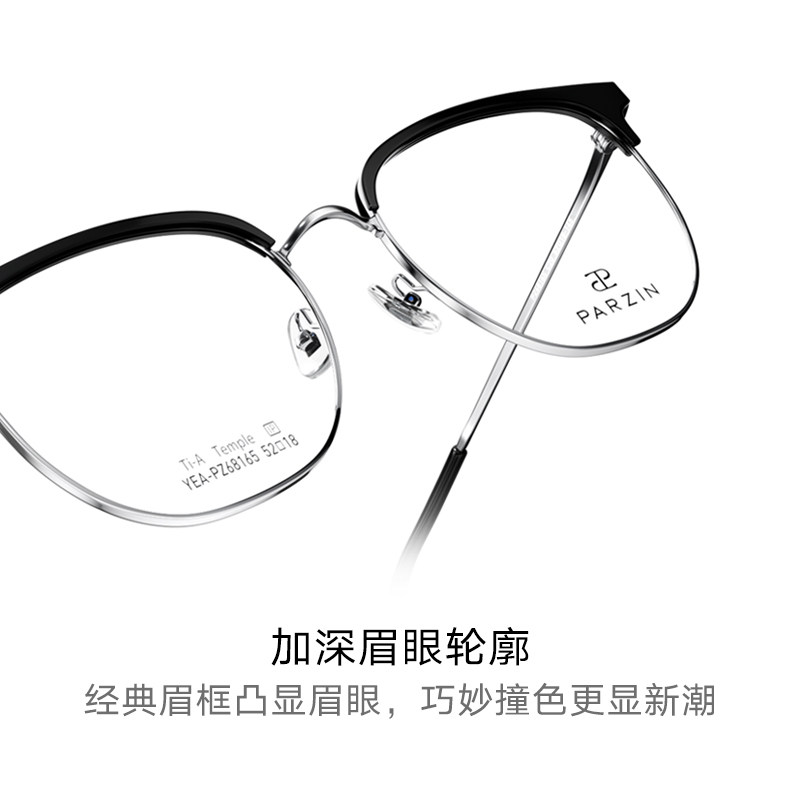 帕森光学眼镜架男休闲商务轻盈钛腿眉框可配度数近视眼镜女 68165