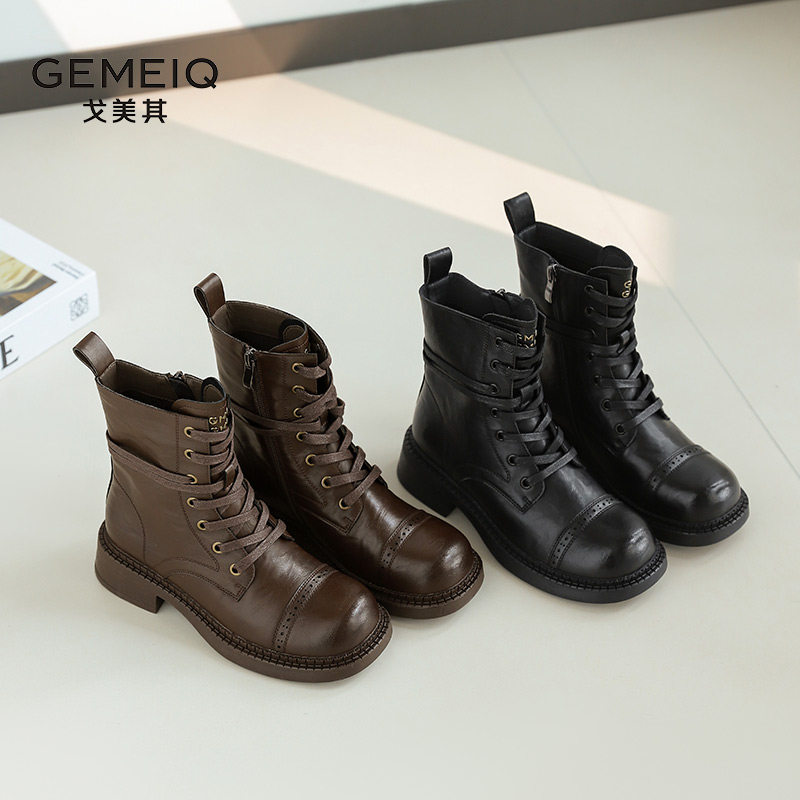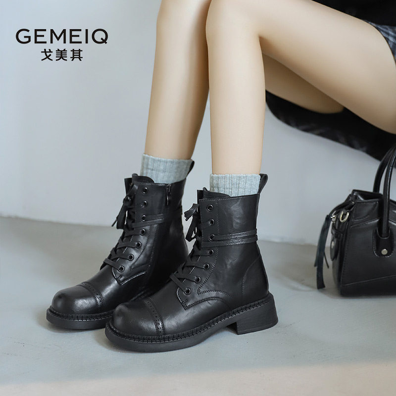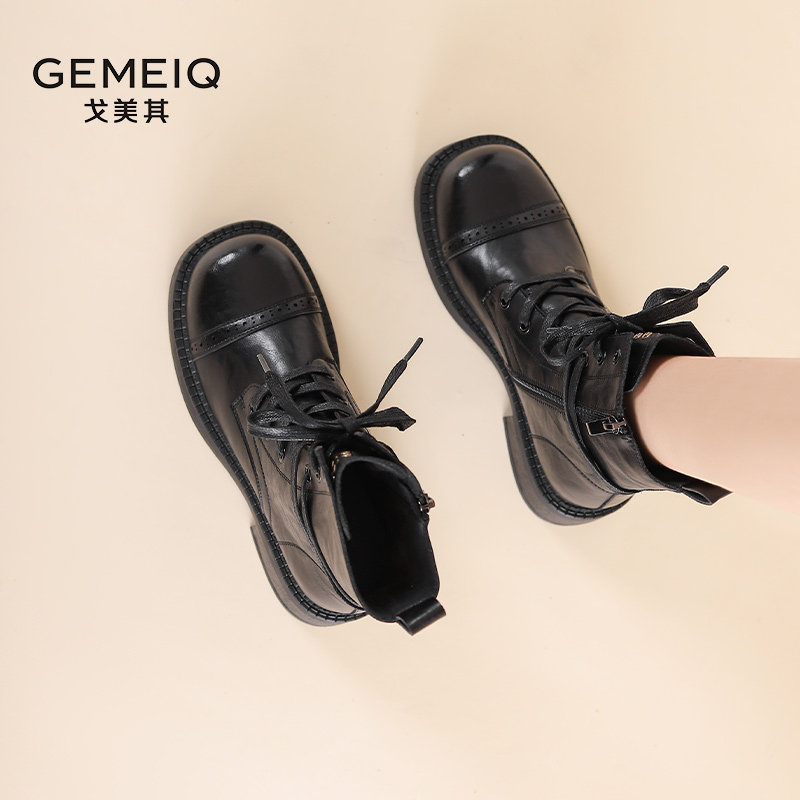 戈美其厚底马丁靴女舒适新款春秋单靴增高英伦风机车复古靴子短靴