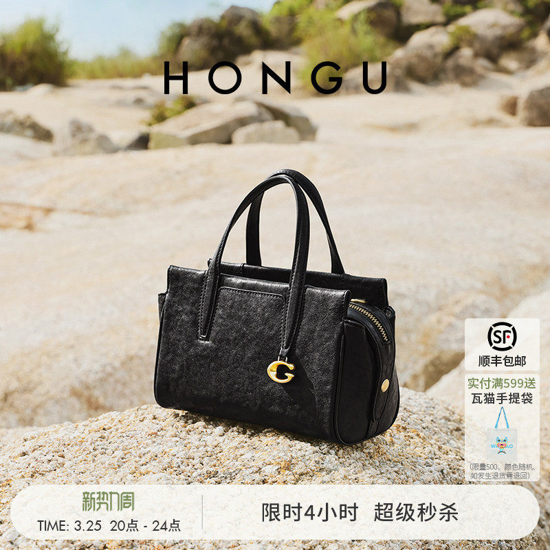 红谷包包2026新款植鞣牛皮单肩手提包真皮通勤托特包斜挎女包小包