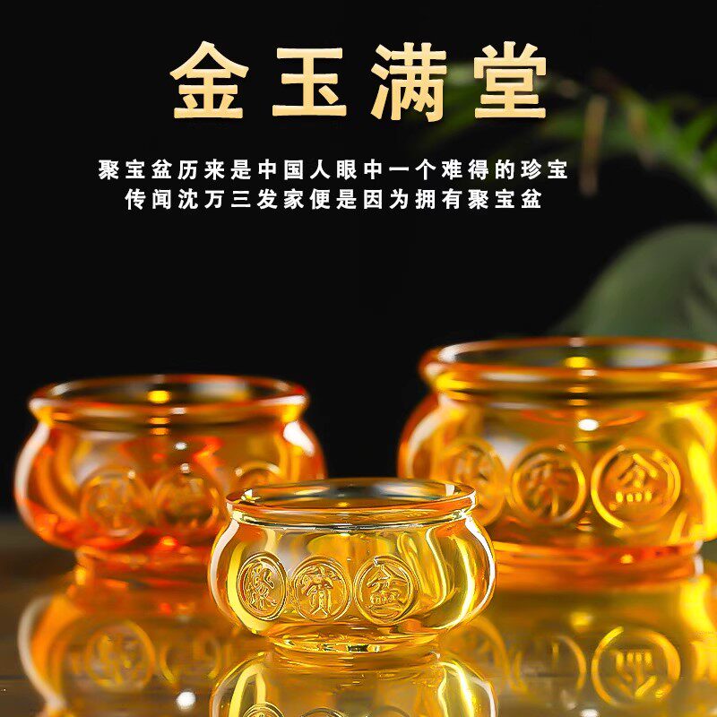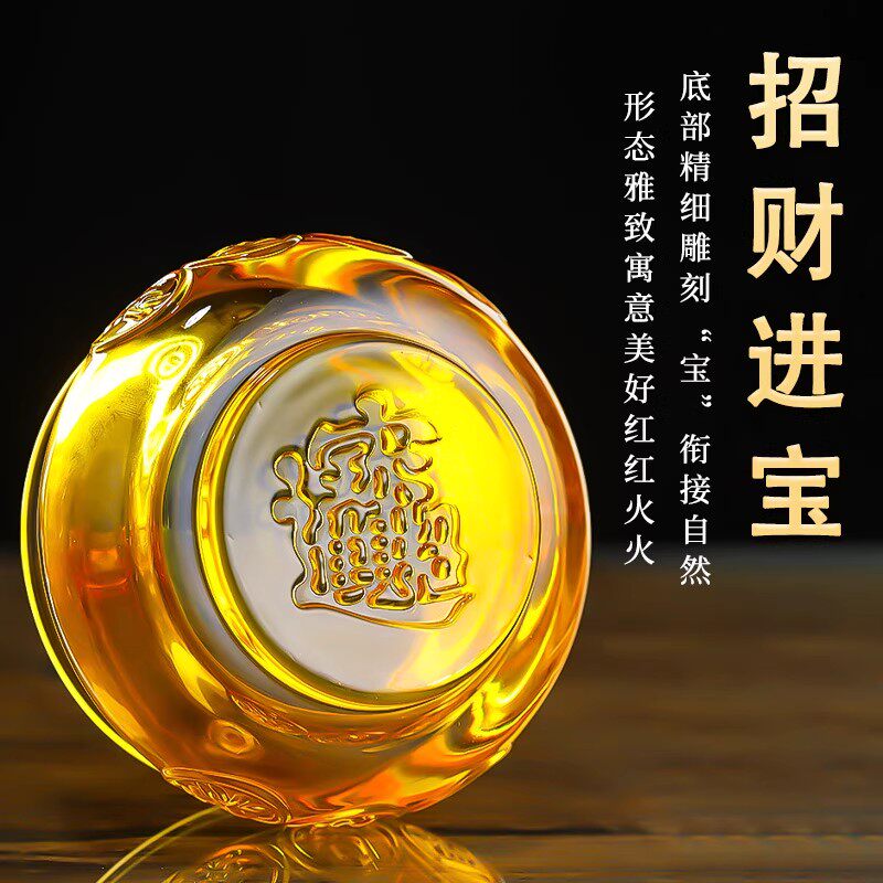 黄水晶聚宝盆摆件招财聚财琉璃元宝家用客厅装饰品存钱罐礼品桌面