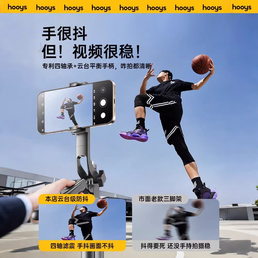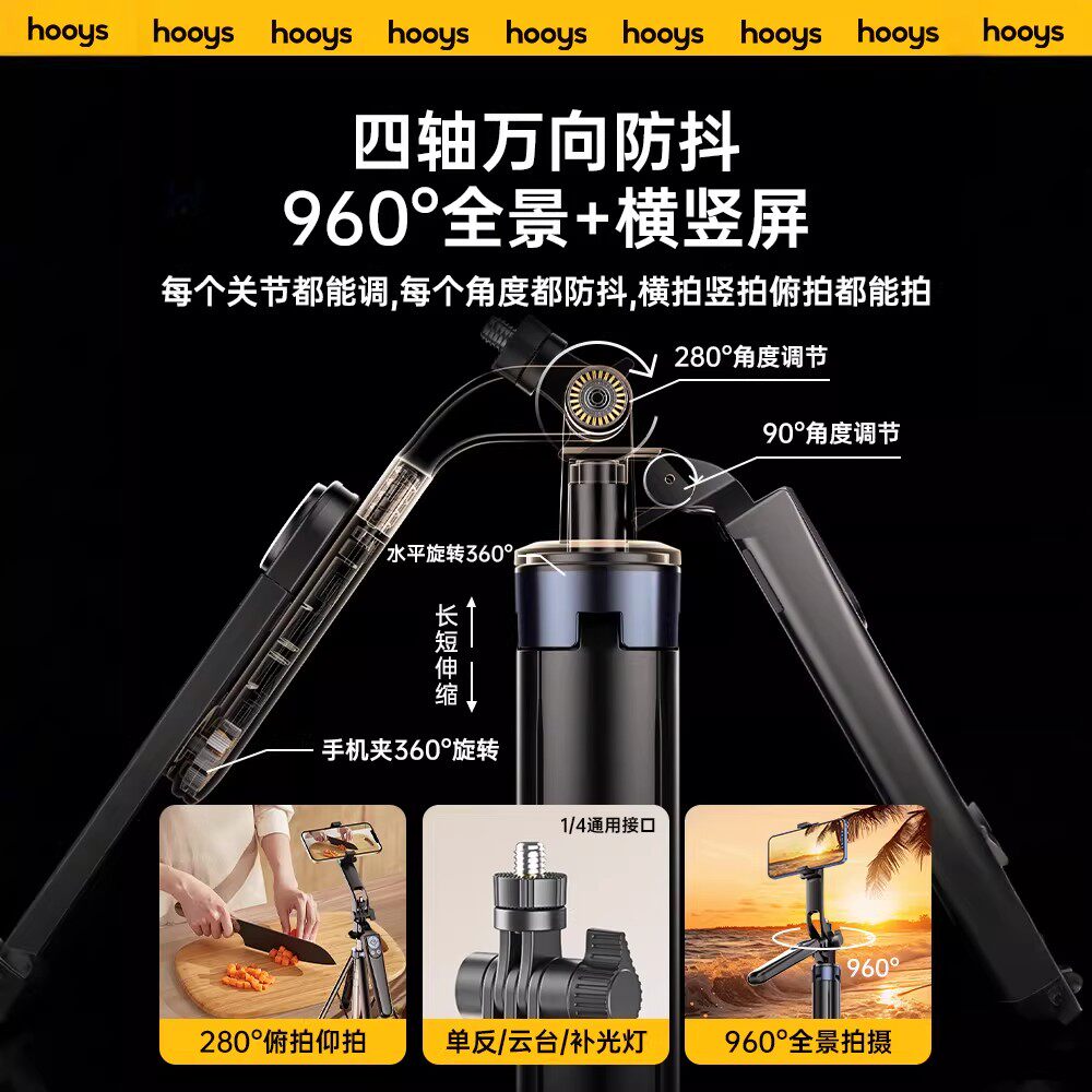 真四轴防抖2026新款自拍杆落地三脚架手机拍照直播支架旅游便携自拍神器360度旋转手持演唱会视频通用拍摄架