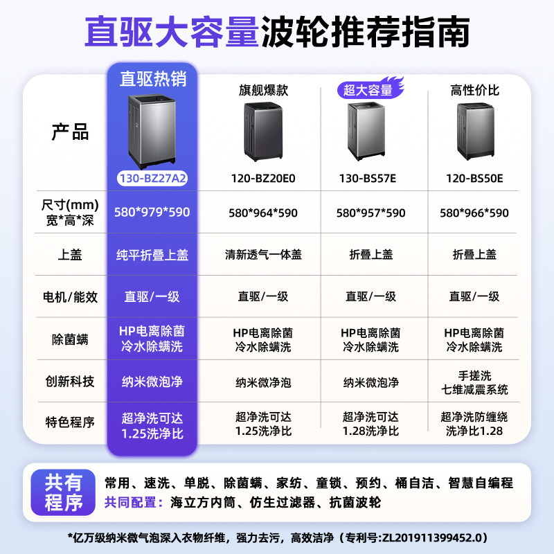 【补贴15%】海尔波轮洗衣机13KG大容量家用57E全自动直驱变频27A