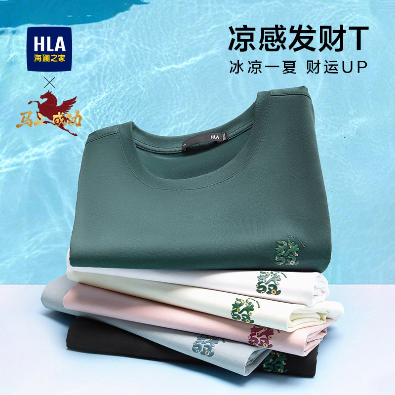 【凉感】HLA海澜之家马年贺岁系列26夏新发财大码短袖T恤上衣男装