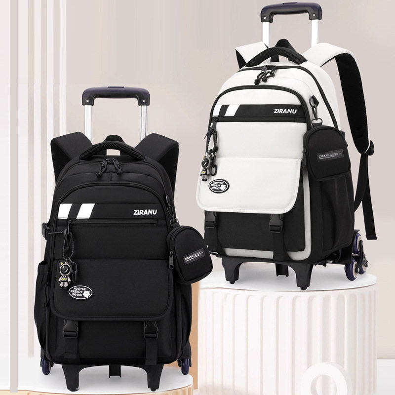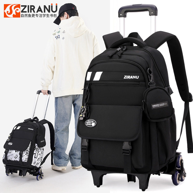 自然鱼新款初中生拉杆书包简约高质量ins中学生书包大容量双肩包
