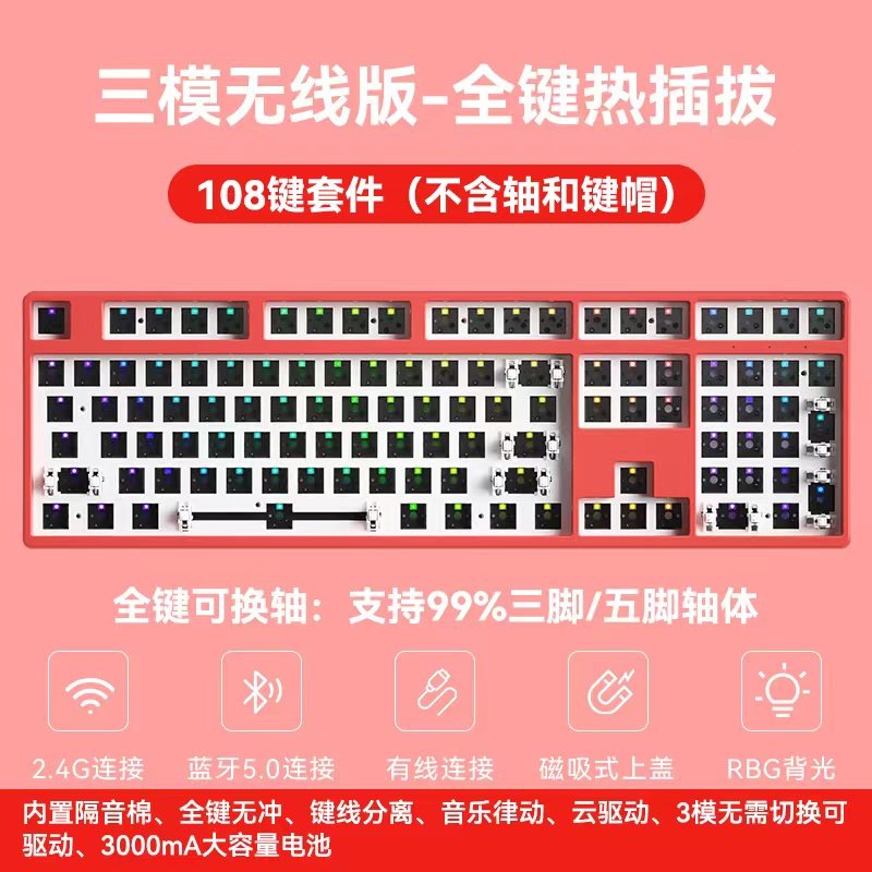 noppoo诺朴机械键盘108键三模RGB轴座插拔客制化套件DIY无线蓝牙