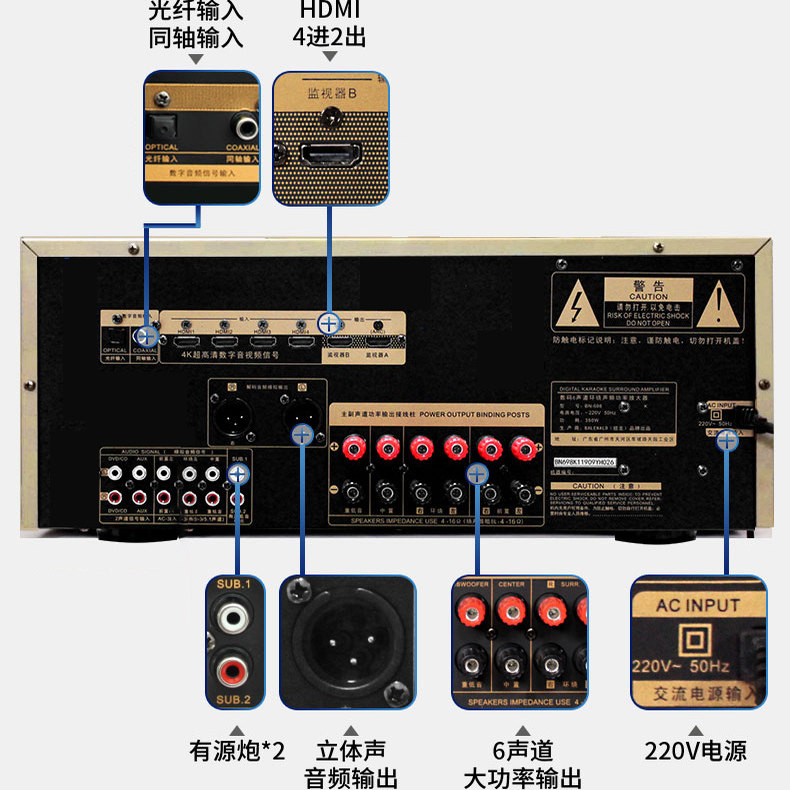 真解码 6个hdmi 6声道大功率 蓝牙 K歌