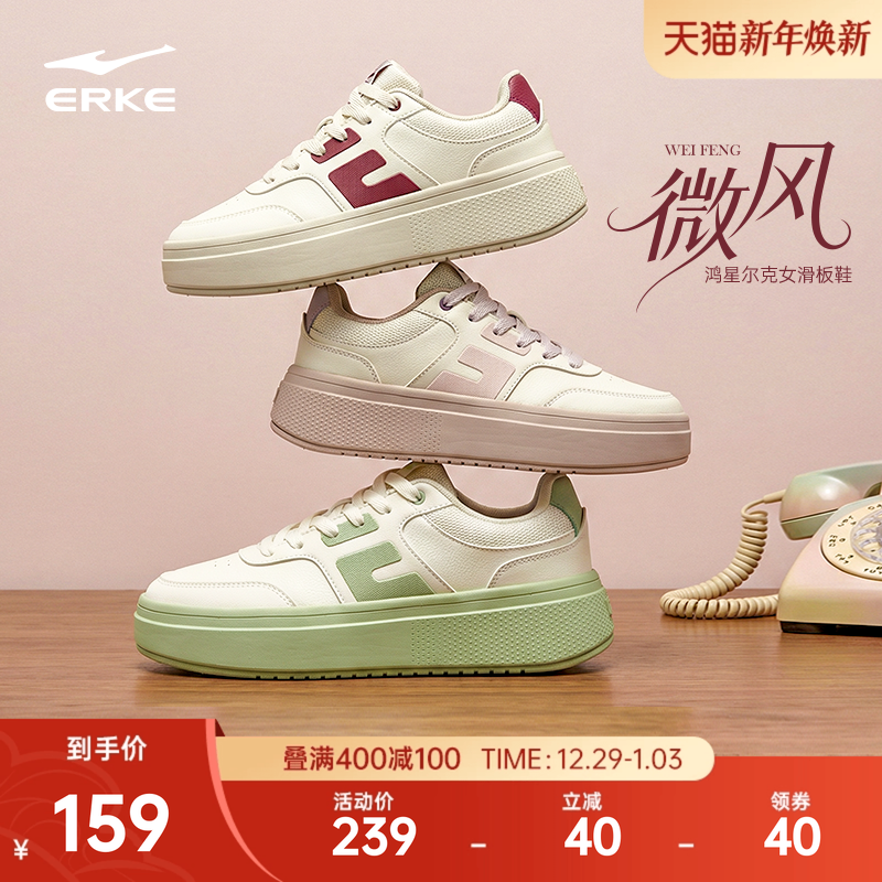 微风鸿星尔克女鞋板鞋冬季新款鞋子厚底增高女款百搭运动鞋休闲鞋