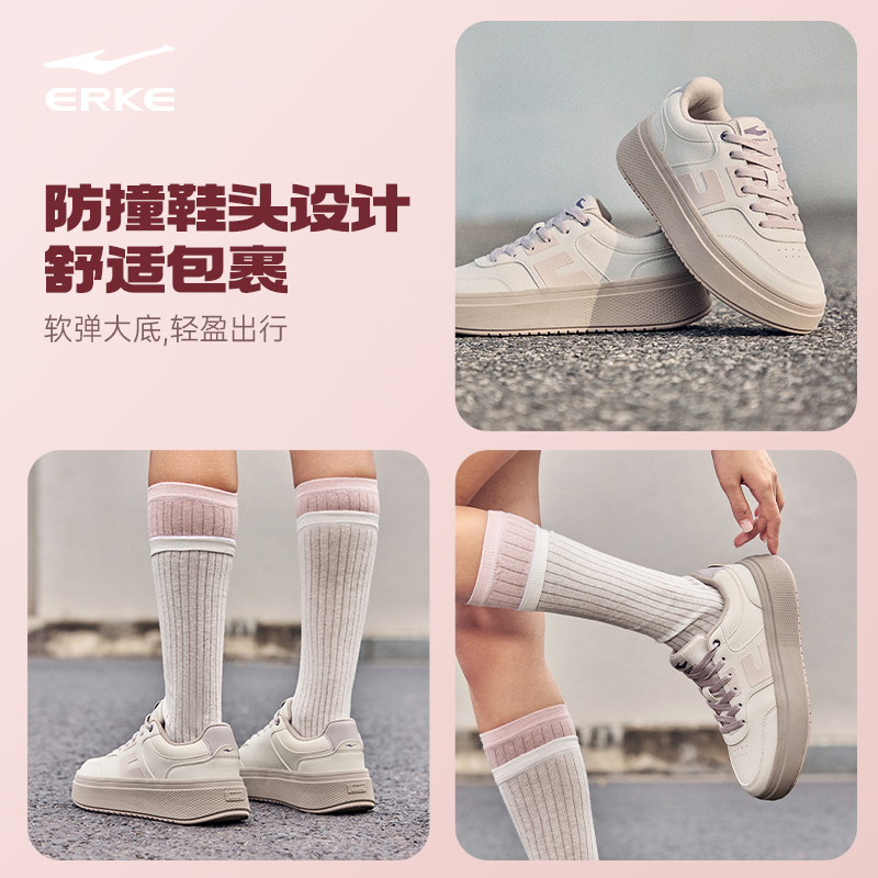 安踏元年丨板鞋女鞋冬季舒适厚底增高小白鞋轻便休闲鞋百搭运动鞋