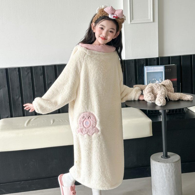 a类儿童吸水浴袍长款加厚中大童家居服珊瑚绒卡通可爱睡袍秋冬季