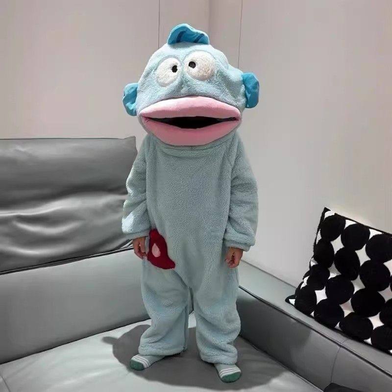 丑鱼儿童可爱搞怪连体睡衣男女童秋冬季加厚珊瑚绒卡通亲子家居服