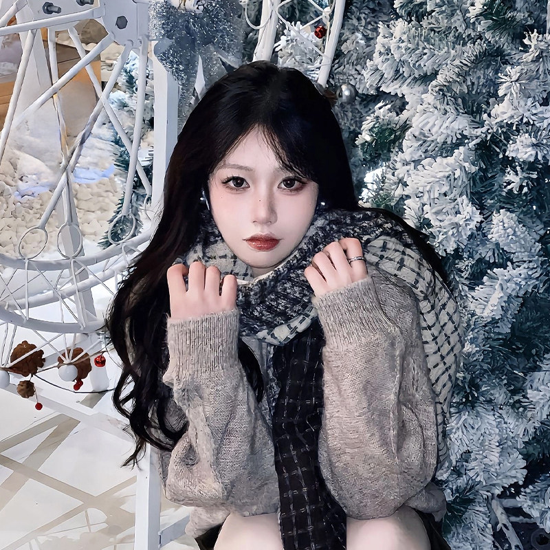 雪花双面针织围巾女秋冬季韩系氛围感加厚保暖高级感围脖复古披肩