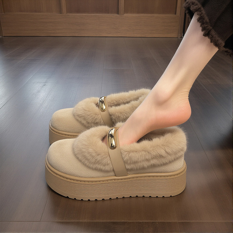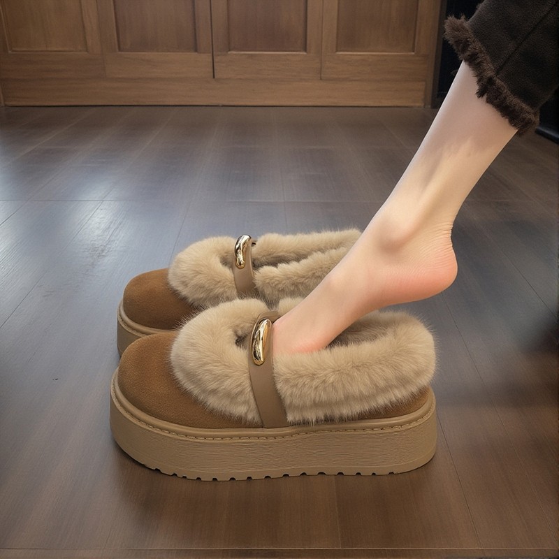 【水貂绒】厚底毛毛鞋女2025新款冬季加绒保暖增高美拉德勃肯棉鞋