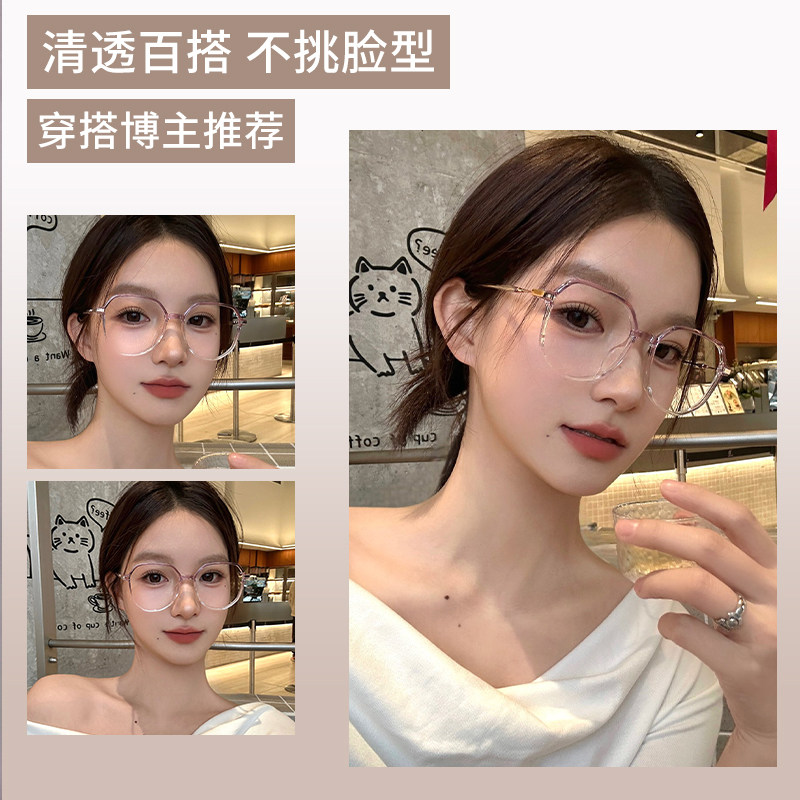 烟雾紫眼镜近视女可配度数防蓝光大框显脸小眼镜框镜架专业配眼镜
