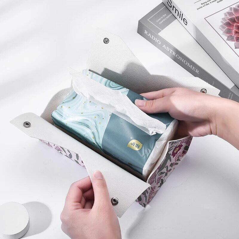 原创马鞍皮车载纸巾盒奶油风高档餐巾纸抽盒扶手箱椅背挂式抽纸套