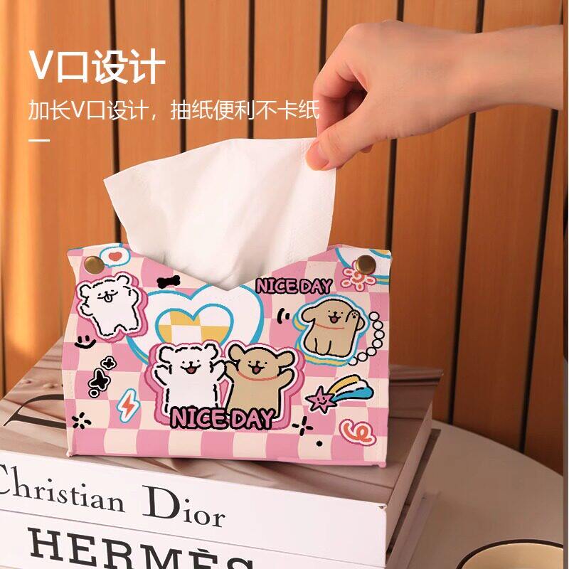 ins线条小狗创意纸抽盒客厅纸巾盒收纳套家用卧室桌面抽纸盒台面