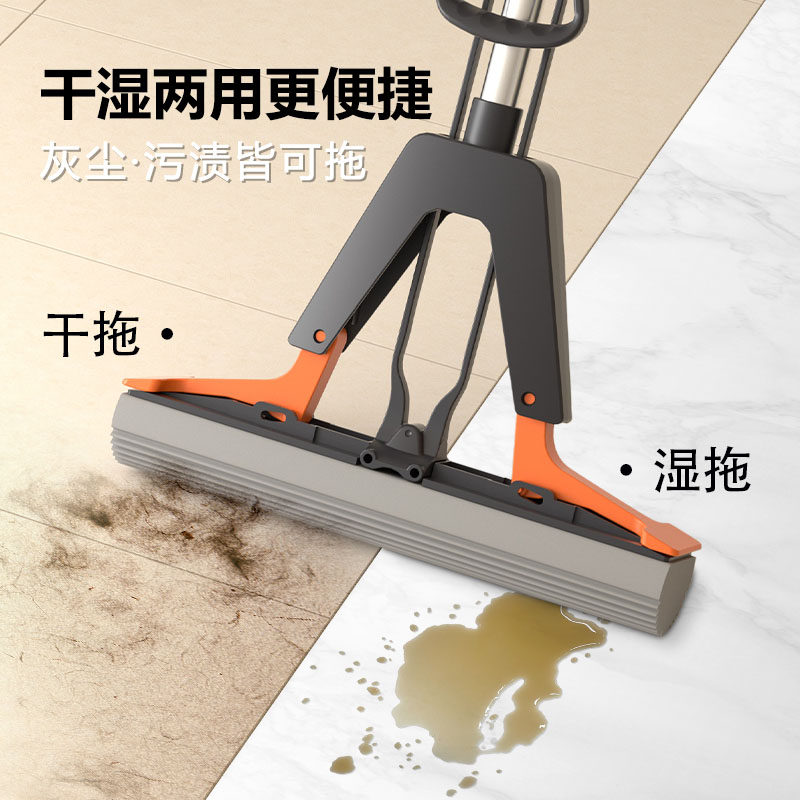 海绵拖把免手洗2025新款一拖家用吸水地拖神器净墩布胶棉头对折式