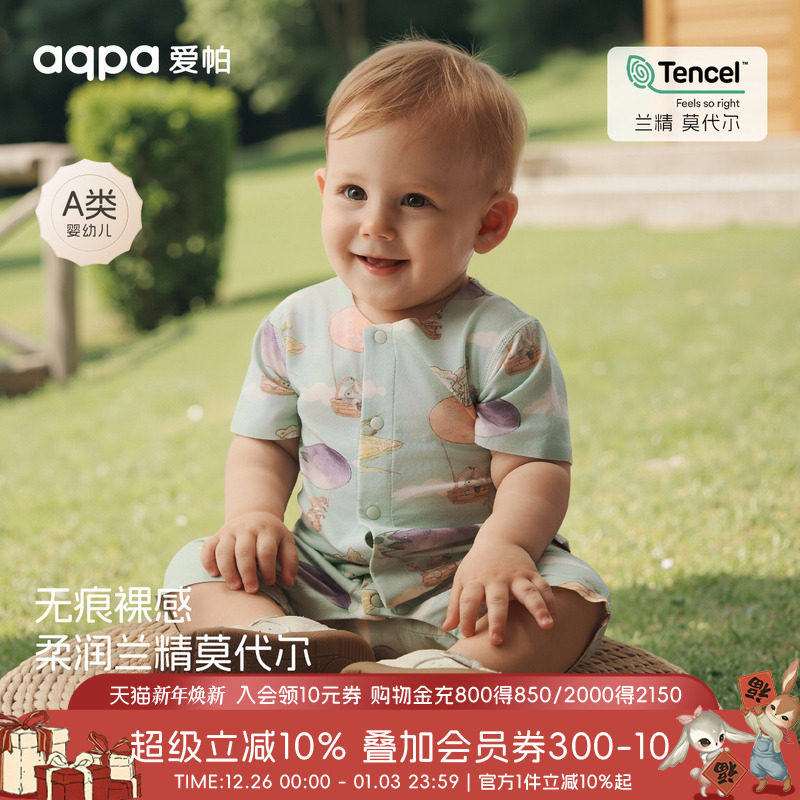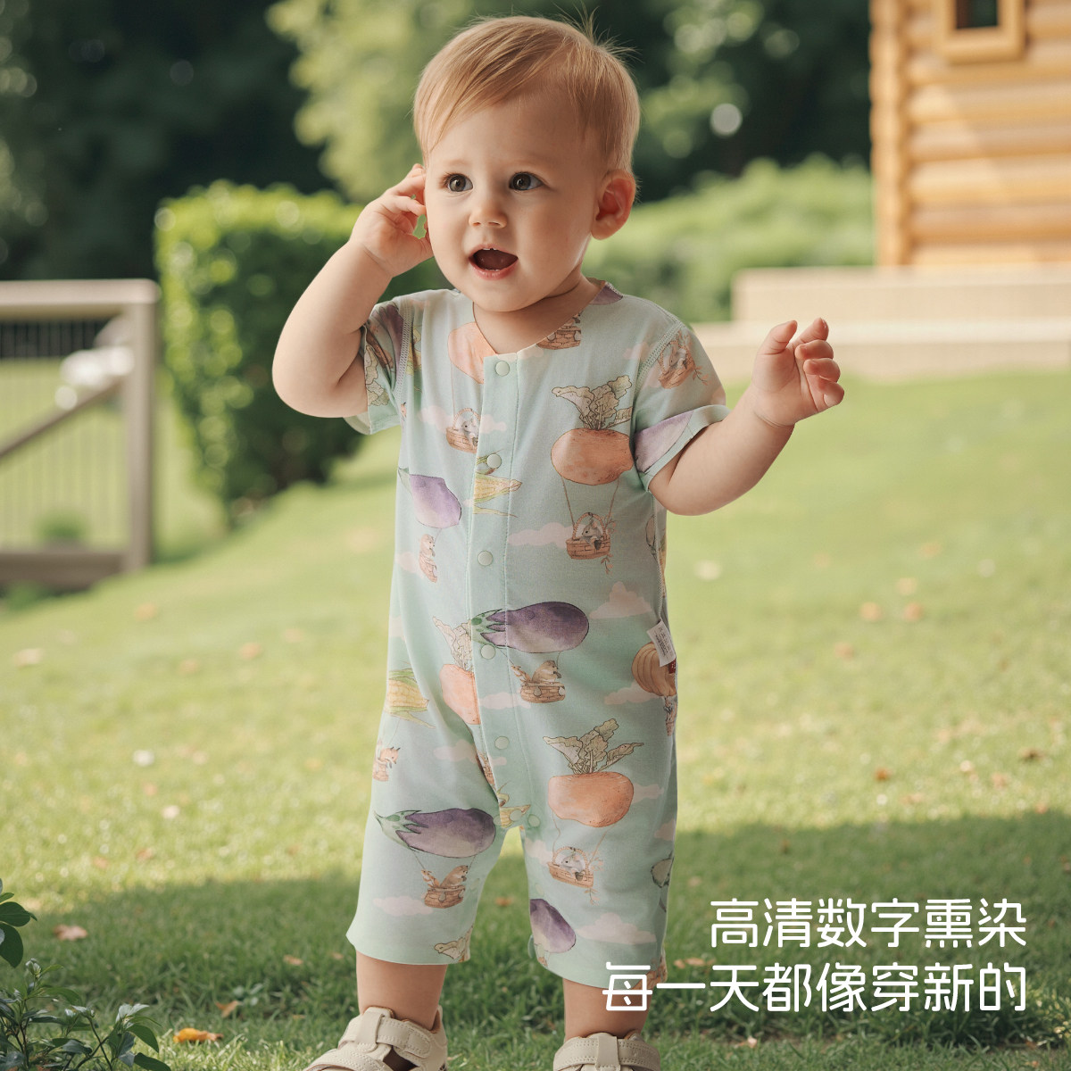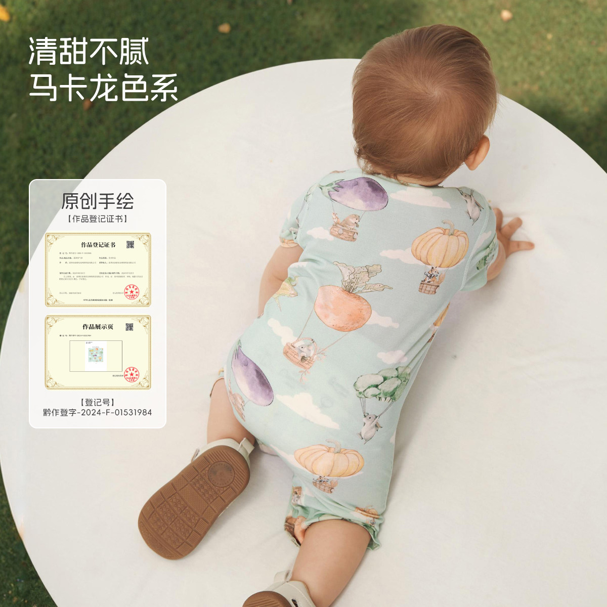 【蔬果热气球】aqpa爱帕宝宝儿童夏季外出短袖前开连体衣婴儿爬服