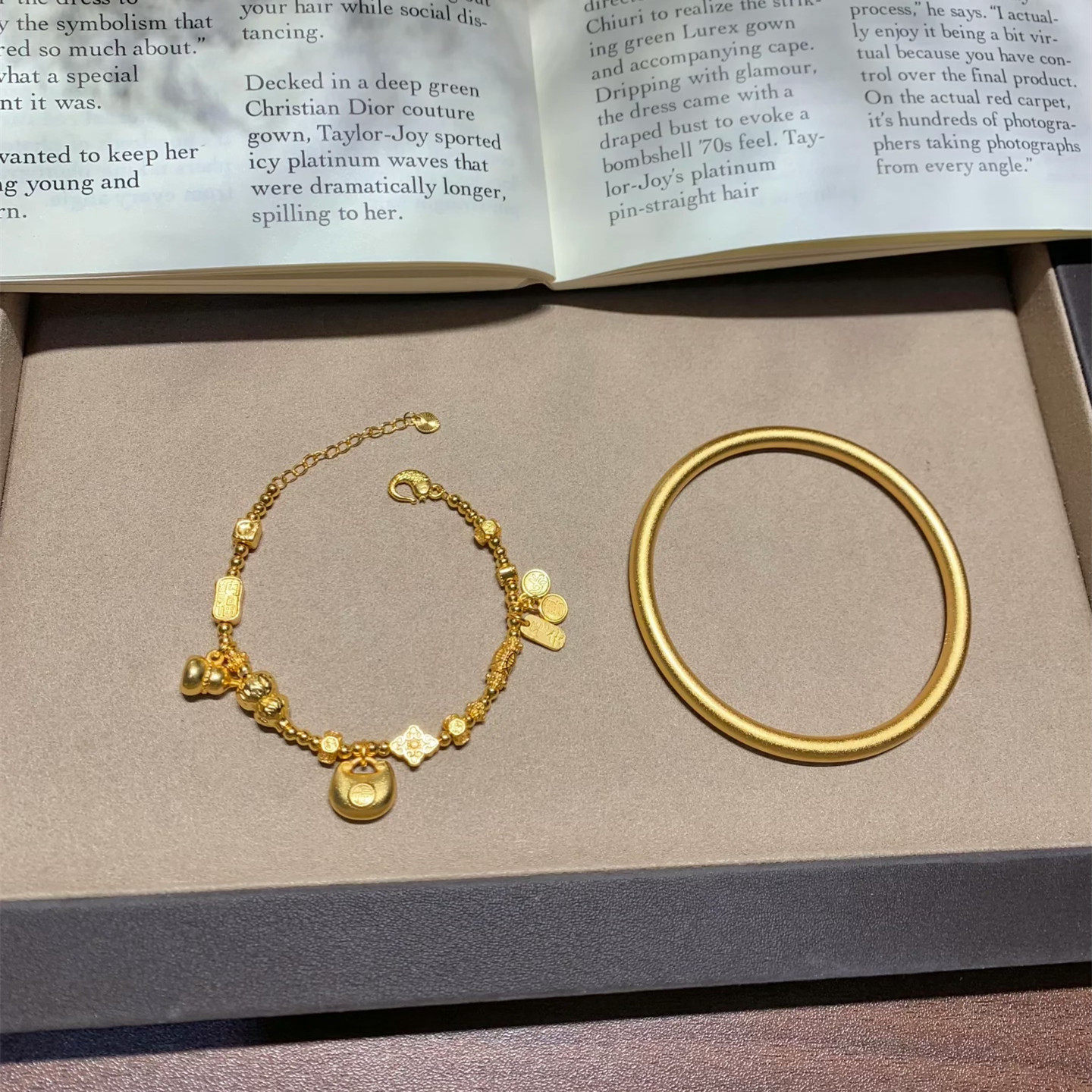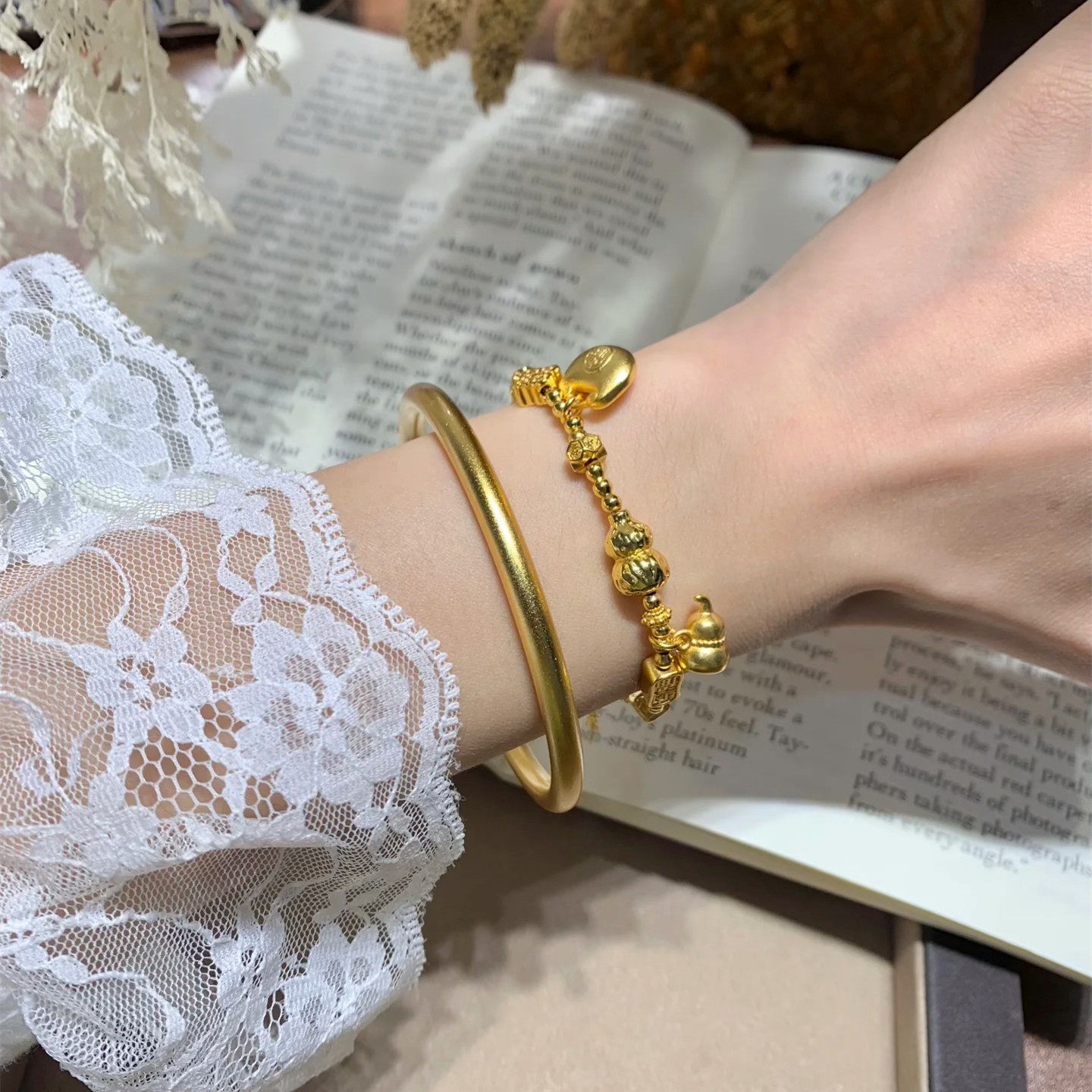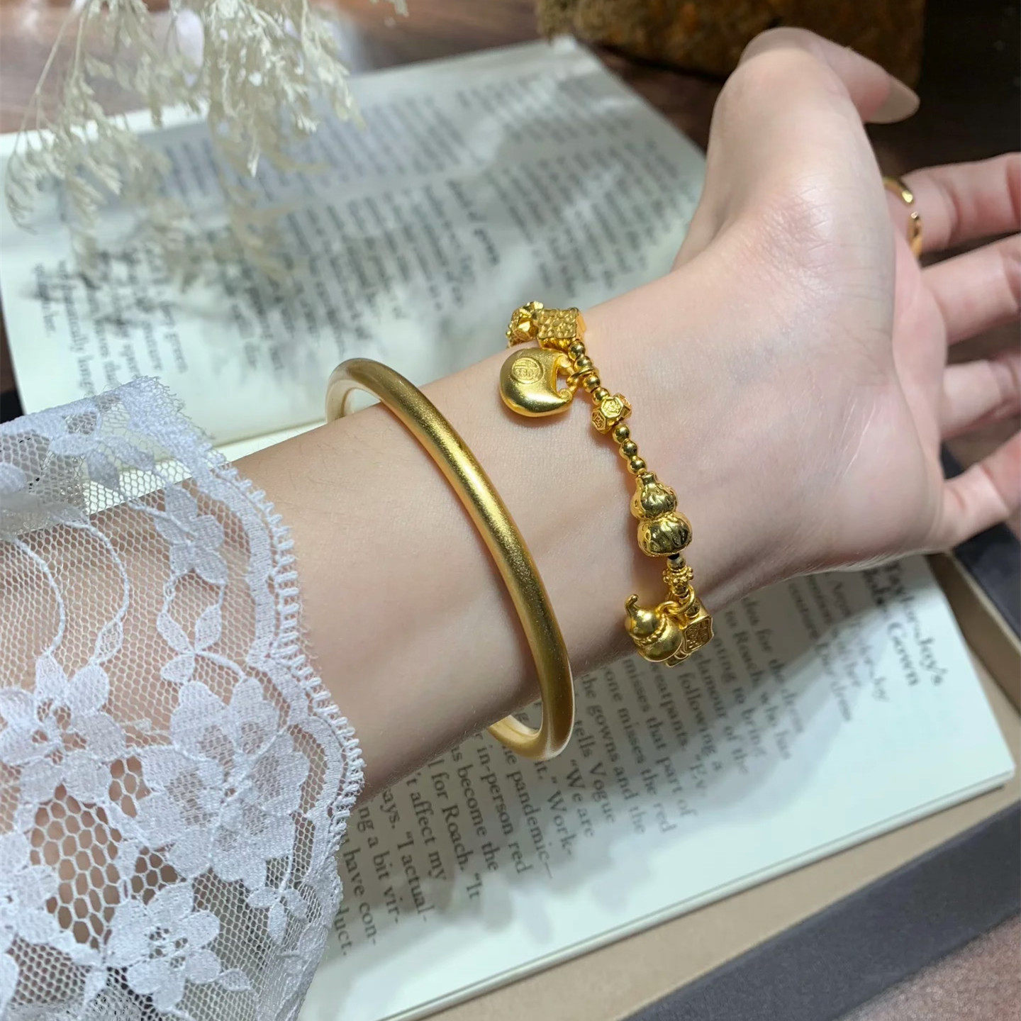 金店同款沙金彷真金素圈传承手镯平安喜乐送女友简约新中式古法