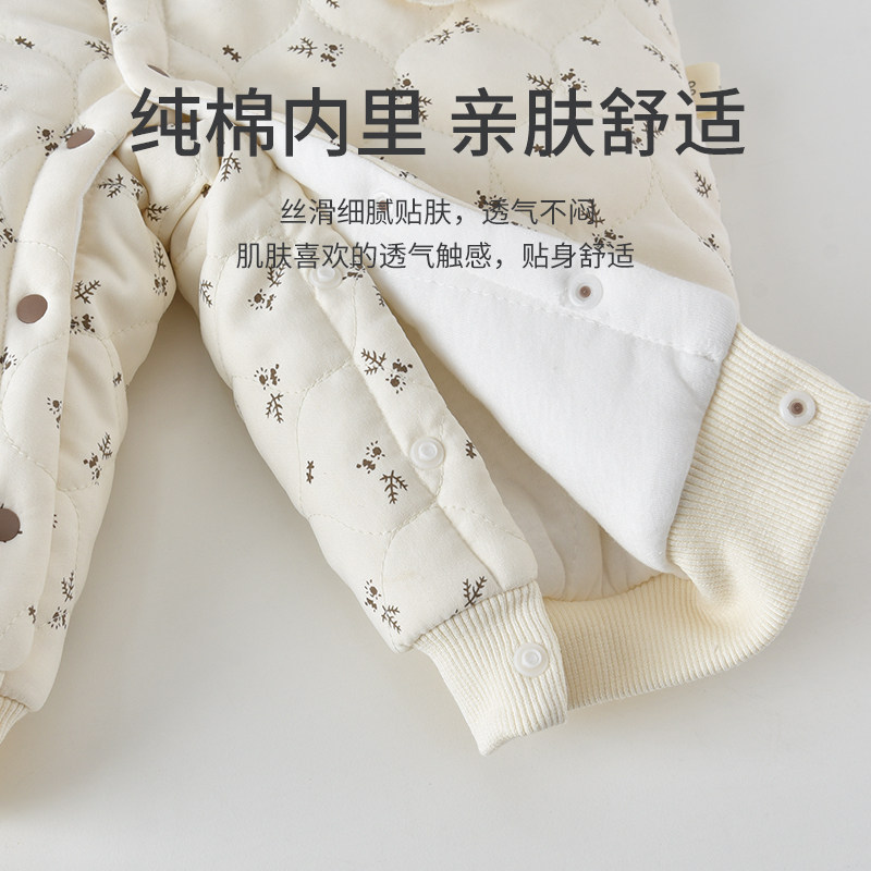 贝肽斯婴儿夹棉连体衣冬季加厚保暖新生儿衣服宝宝外出服冬装棉服